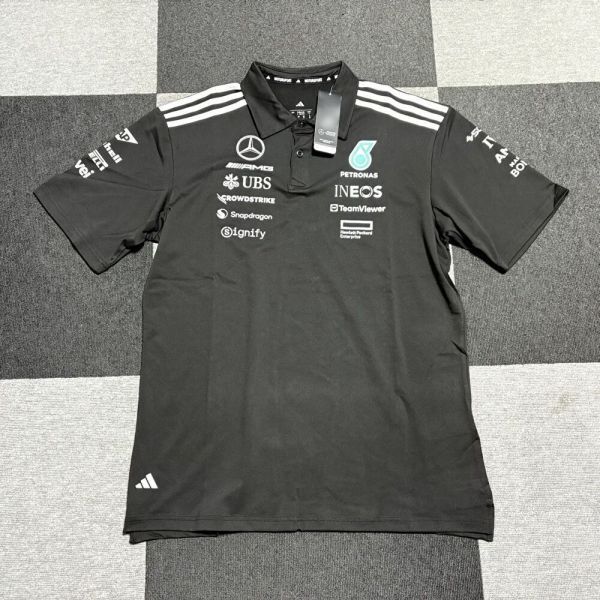 ●新品使用未開封 2025 メルセデス AMG ペトロナス F1 ポロシャツ ブラック になります。 ●サイズは『Sサイズ 』になります。 身幅:50cm 着丈:70cm 誤差はあります。(平置き水平測定) ●生地&プリントともに質感のあるとてもいいシャツです。 ・こちらはオフィシャルではありませんのでご注意ください。