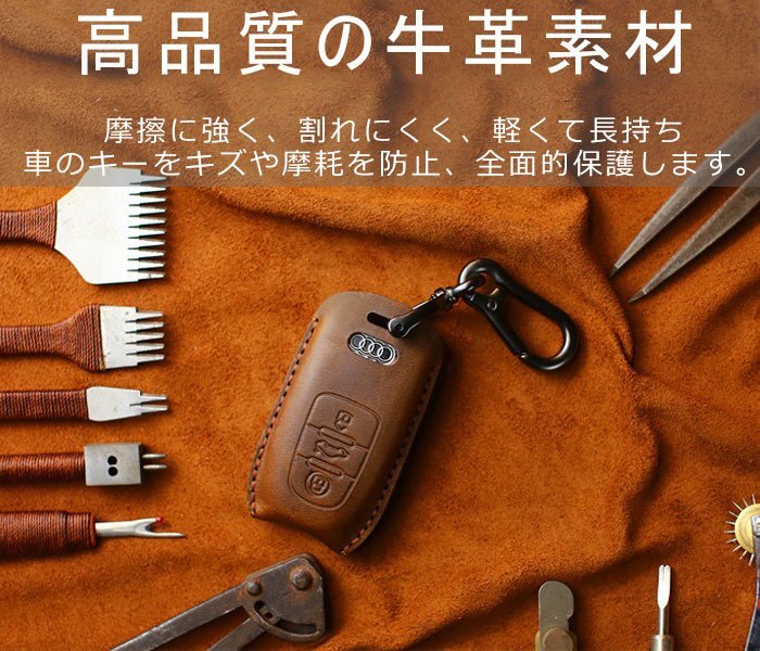 アウディ 対応キーケース キーホルダー 高級牛革 Audi TT R8 A3 S3 A4 8K A5 8T S5 A6 S6 C7系 A7 S7 A8 Q5 SQ5 Q7 等に適用【ブラウン】