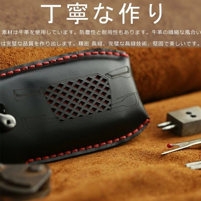 【素材】高品質の牛革を採用します。スマートキーケースは電波遮断しないの設計を採用され、信号には邪魔しないので、安心的に利用できます。