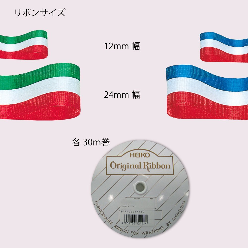豊富なカラーやサイズ展開がうれしいシモジマのラッピング用品。 ギフトイタリアリボンはイタリア国旗をイメージたした配色のリボンです。 お菓子や贈り物のラッピングにおすすめ。 メンコと呼ばれるロール状の台紙に巻かれていますので、保管時に折り目やしわがつきにくいのがうれしいポイント。 他の材質や色味のリボンと組み合わせてのご使用もお洒落です。 箱物のギフトや袋など、様々なものにご使用いただける便利なリボンです。
