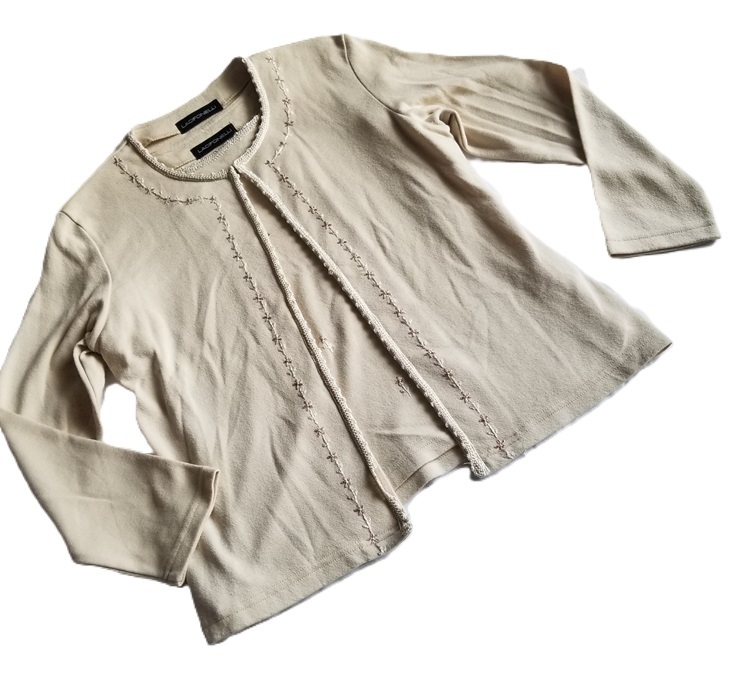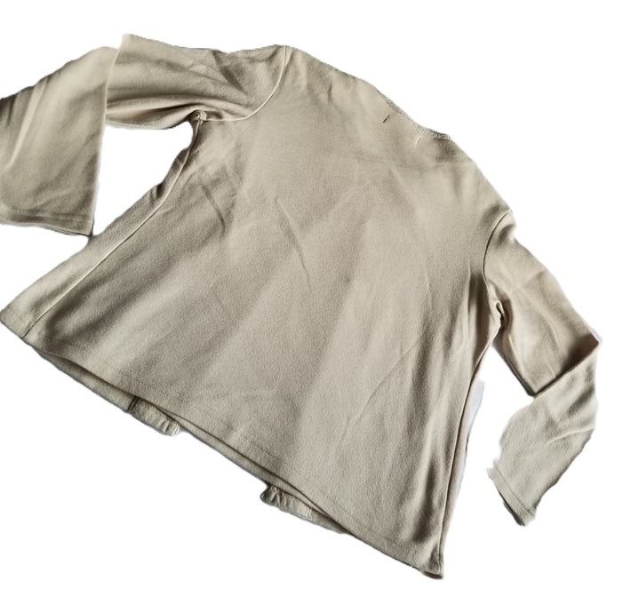 | カラーベージュ。 サイズはM。 身長154-162。 胸囲79-87。 着丈は約55cm、 袖丈脇下から約40センチ。 素材はポリエステル65%・ 綿35%。 表面は毛羽立っている部分、 素材落ちしている部分あります。 見落としのあるヨゴレや 多少のオリシワなどある事を ご理解下さい。 |