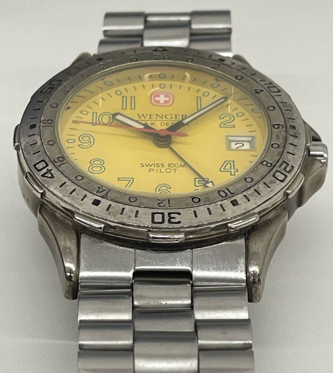 | 2781b WENGER ウェンガー S.A.K. DESIGN 097.0656 GMT 100M PILOT ステンレス QUARTZ メンズ 腕時計 電池交換未実施 現状品 梱包無で発送 |