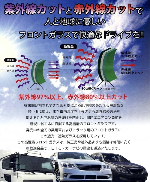 フロントガラス、リヤガラスによりましては特殊加工の施されている商品がございます。