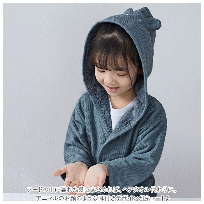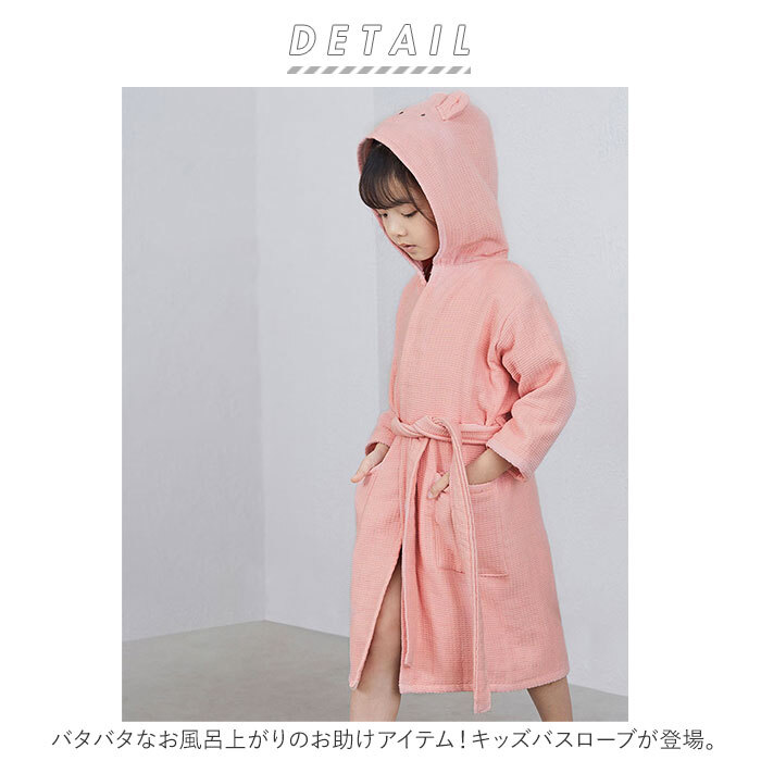 | 商品説明 | ・・バタバタなお風呂上がりのお助けアイテム!キッズバスローブが登場。 ・デリケートなお子さまの肌に優しい、コットン素材を使用したバスローブ。 ・お風呂から出たらそのままサッと羽織って、付属の腰紐を結べばOK。 ・裏面は柔らかなタオル地になっており、全身の水分をすばやく吸水!湯冷めの心配も不要◎ ・フードの中に濡れた髪をまとめれば、ヘアタオル代わりに。アニマルのお顔のような耳付きデザインがキュート♪ ・左右に便利なポケットを配置。 ・成長に合わせて選べる3サイズ展開。兄弟・姉妹お揃いで使えるのが嬉しい! |