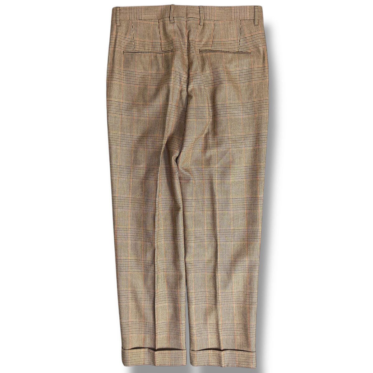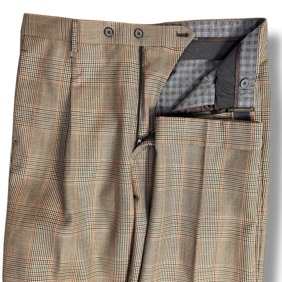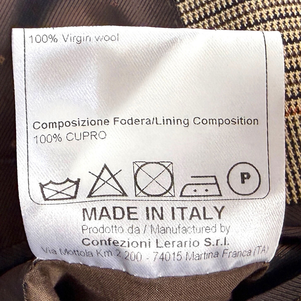 【ジャケット48/ジレ48/スラックス48サイズ】ジャケット:肩幅43cm/身幅51cm/着丈72cm/袖丈64.5cm/第一ボタン身幅46cmベスト:肩幅35cm/身幅52cm/着丈58cmパンツ:ウエスト40.5cm/渡り幅32.5cm/股上27.5cm/股下70cm/裾幅19cm/ダブル幅4.5cm/裾ヘム幅3.5cm/ウエスト縫い代5cm(1プリーツ仕様)超美品 Aランクタリアトーレ PINO 秋冬向け グレンプレイド柄 3ピーススーツ ブラウン 48 TAGLIATORE〈TAGLIATORE〉の秋冬向けPIN0ラインによるグレンプレイド柄3ピーススーツ。ジャケットはフロント2つボタン、背抜き裏地、サイドベンツ、袖本切羽仕様でクラシックな仕立て。ベスト付きでフォーマルからビジネスまで幅広く活躍。パンツは1プリーツ入りのスリムシルエットで、ダブル裾仕様。上質素材で温かみがあり、秋冬シーズンに最適な着心地です。【状態】超美品(Aランク)【カラー】ブラウン(グレンプレイド柄)【素材】画像参照【購入先】AACD加盟リユースショップにて購入【仕様】〈ジャケット〉・フロント2つボタン・背抜き裏地・サイドベンツ・袖本切羽〈ベスト〉・クラシックデザイン・単独でも着用可能〈パンツ〉・1プリーツ仕様・スリムシルエット・ダブル裾(4.5cm)・裾ヘム幅3.5cm・ウエスト縫い代5cmで調整可能タリアトーレらしい美しいシルエット秋冬に映えるグレンプレイド柄ベスト付きで3ピースとしても単品としても活躍