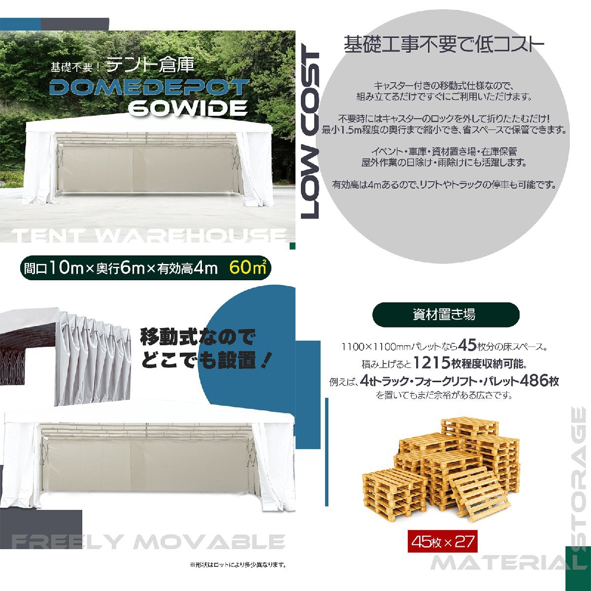 | 製品名 | 移動式テント倉庫 60m2WIDE |
