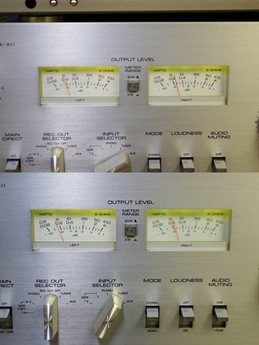 全体的には大きなキズありませんが、 ボリュームつまみに若干の擦れ箇所があります。 電源 問題なく入ります。 メーター照明・振れも問題ありません。 AUXとTUNER回路にCDを繋ぎ音楽を再生。 ガリ音も無く正常に再生できますが、 左側の音量が右側に比べて 3:7位の感じです。 ボリュームを上げてバランスで調整すれば、 何とか聴けます。 PHONO回路がボリュームを上げなくても ガリ音、メーター振れがあります。 恐らくコンデンサー回路の故障と思われます。 TAPE回路は未確認です。 最近まで事務所でアンプを切り替えて 楽しんでおりましたが、久しぶりにPHONO回路に 繋いだところダメになっておりましたので 出品いたします。 ご自分で修理が出来る方や、部品取りなど、 あくまでもジャンク品とお考え下さい。 発送にあたっては、エアキャップとダンボールで しっかり養生した上で、発送致します。 |