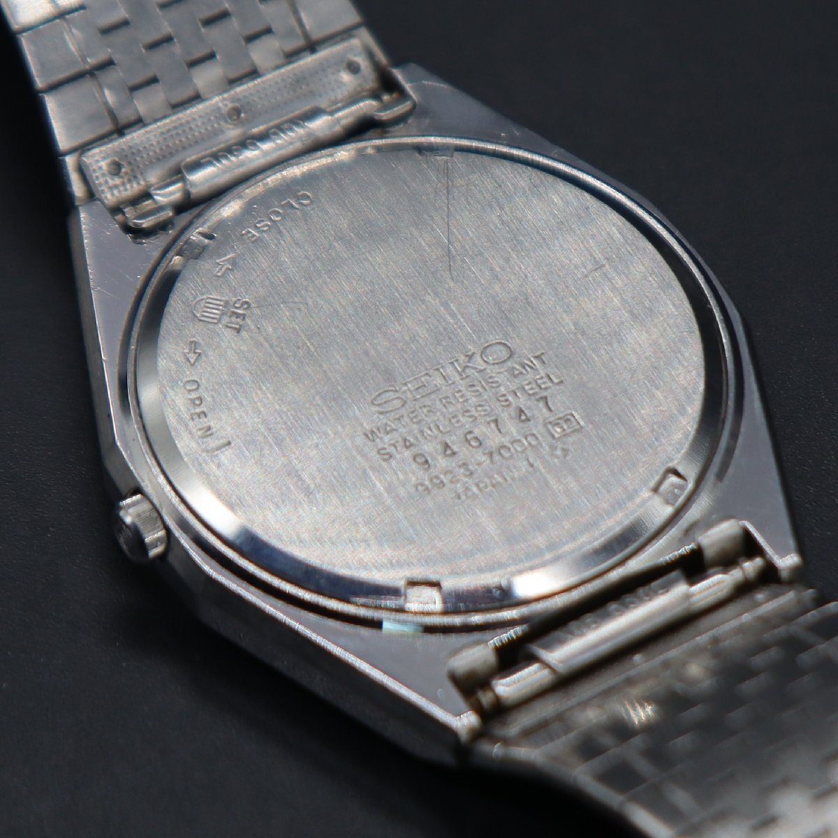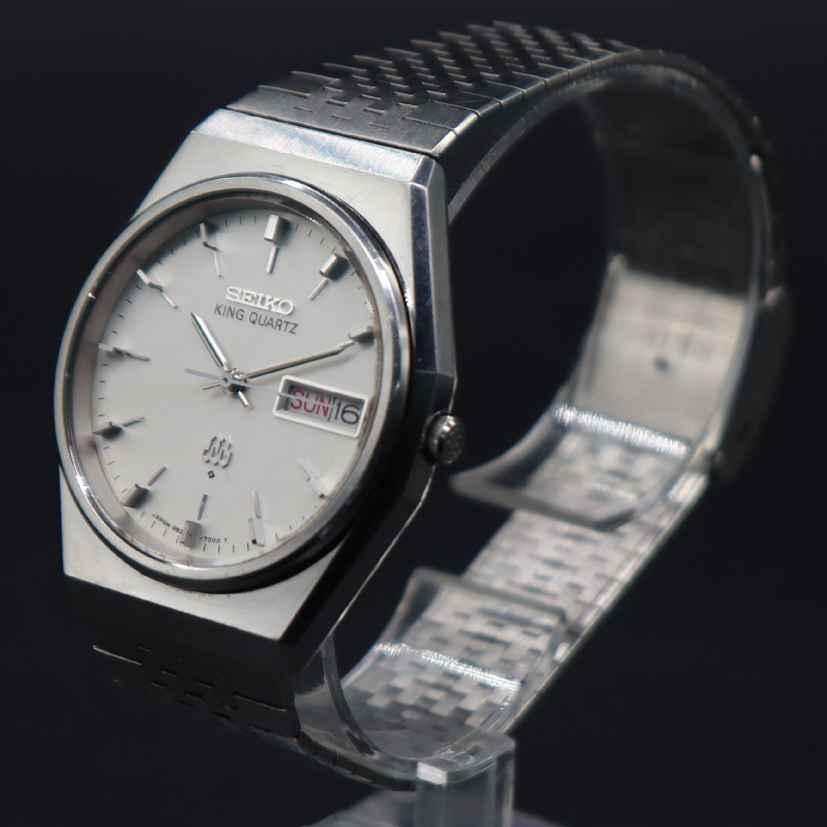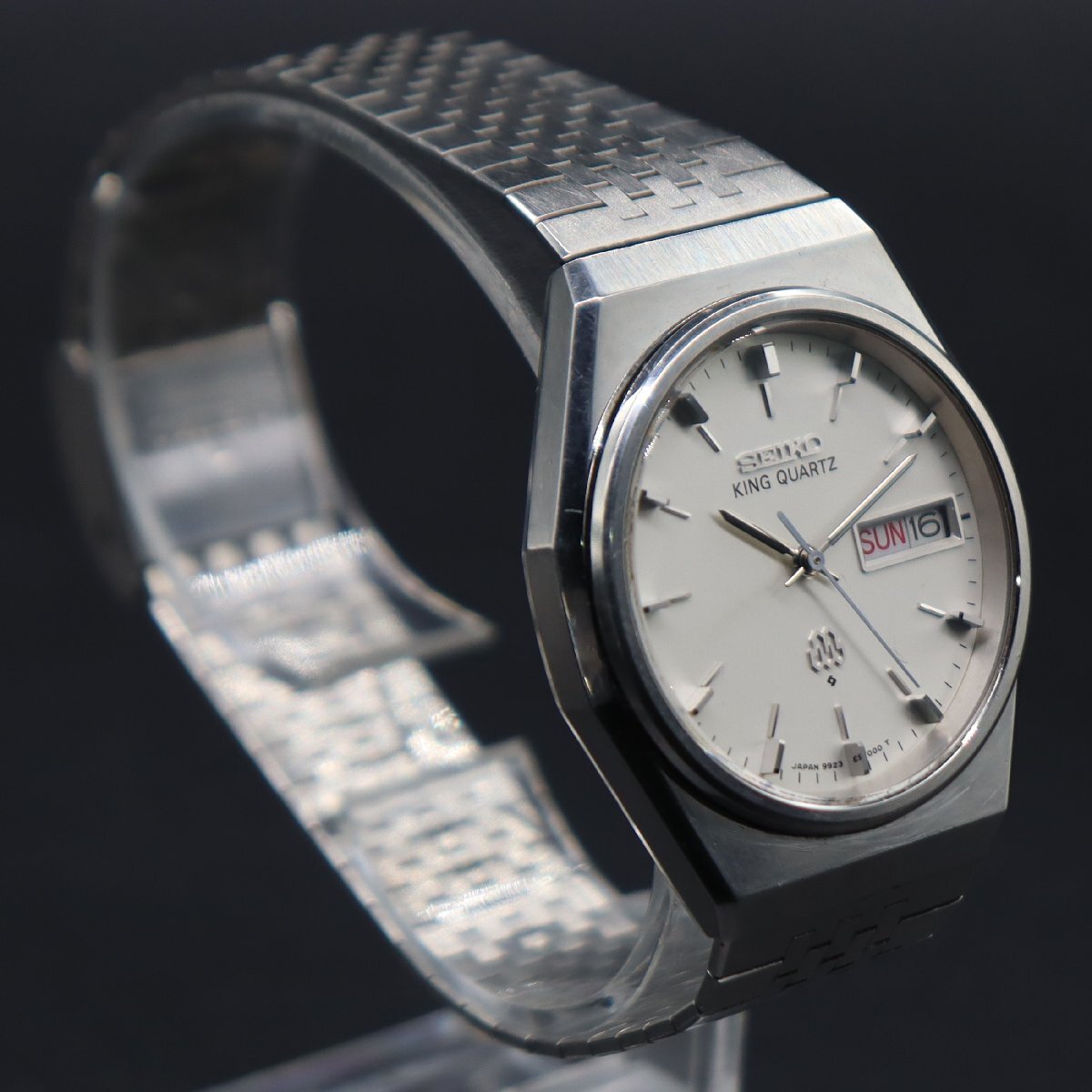 平置きで24時間動作確認済み、大幅な遅れなく稼働中です。 電池残量は不明です。 リューズ一段引きで、デイデイトクイックチェンジOK、 二段引きで時刻調整が可能です。 全体に使用に伴うスレ・キズ、ガラスに線キズと フチに小カケございますが、文字盤は目立った傷みなく、 ホワイトカラーきれいな状態です。 針・変わりインデックス、目視できれいです。 植字ロゴや印字は状態良く、プリントロゴ消えやかすれなく、 視認性は問題なく、良好です。 リューズ、ツインクォーツマーク付きの純正品です。 裏蓋刻印、良好です。 ブレス、スレと小タレございますが、通常使用に問題ございません。 バックルのKQロゴ、開閉良好です。 状態について、詳しくは画像にてご判断願います。 |