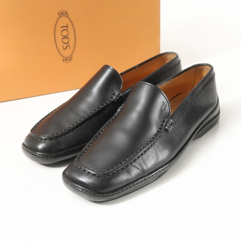 TJ6394▼イタリア製*トッズ TOD'S*レザー スクエアトゥ ローファー スリッポン モカシン 35.5(22.5cm相当) 靴 ブラック