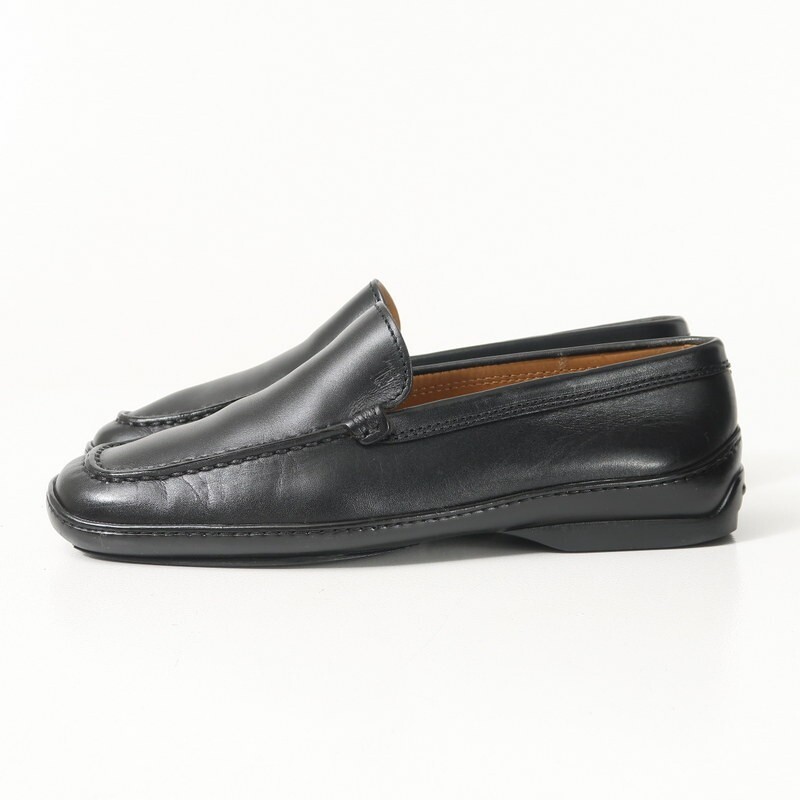 TJ6394▼イタリア製*トッズ TODS*レザー スクエアトゥ ローファー スリッポン モカシン 35.5(22.5cm相当) 靴 ブラック