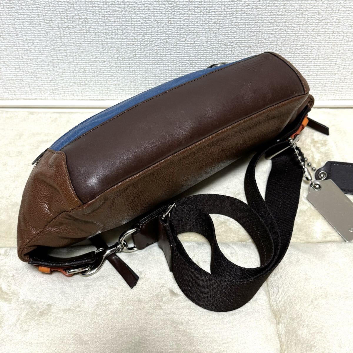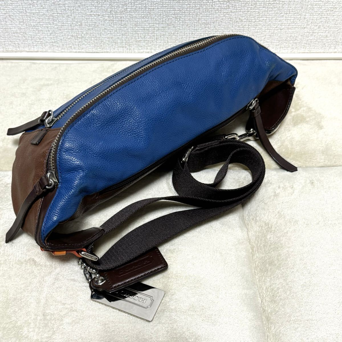 超美品 COACH コーチ トンプソン マルチカラー メンズ ショルダーバッグ ボディバッグ ウエストバッグ オールレザー チャーム付き