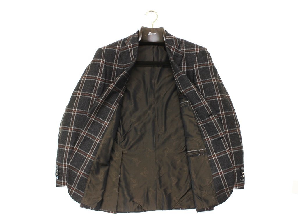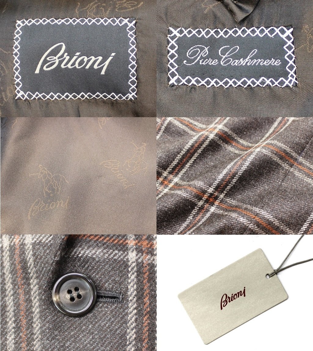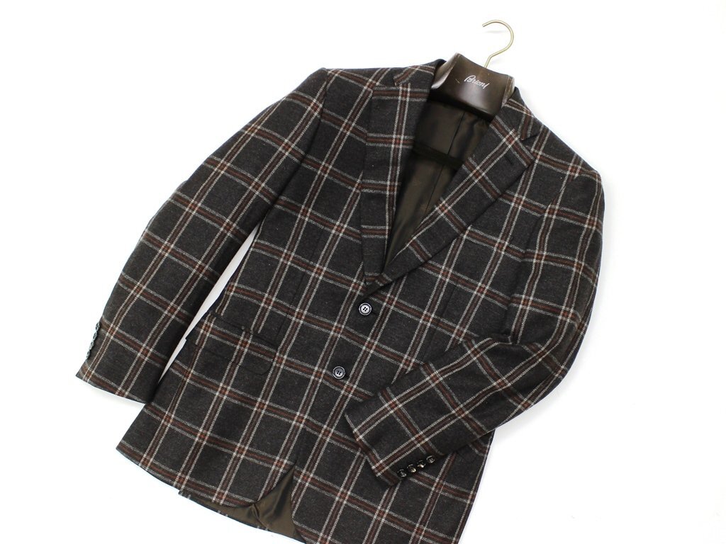 143万新品◆48=M◆Brioniブリオーニ イタリア製 カシミヤ100% タータンチェック柄テーラードジャケット 濃茶ブラウン