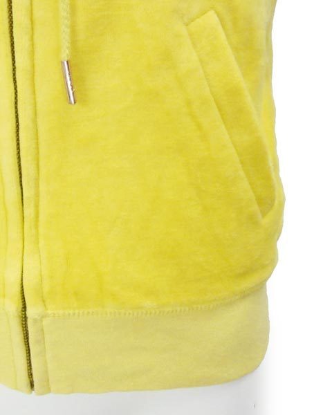 | 発色の良いライムイエローのパーカー。ベロア調の肌触りの良いお生地。普段使いからジムなどのスポーツ時まで活躍してくれます。フードの紐が長く飾り結びが楽しめます。ロゴプリントなど入っていないシンプルなデザインです。 |