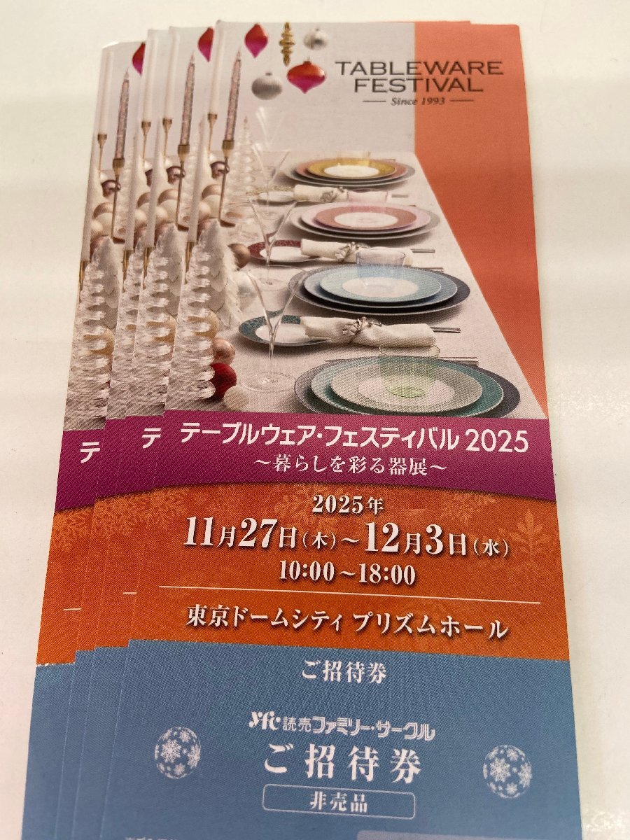 | 出 品 商 品 | 送込☆東京ドームシティ プリズムホール テーブル・ウェアフェスティバル 招待券 1-4枚 | ||