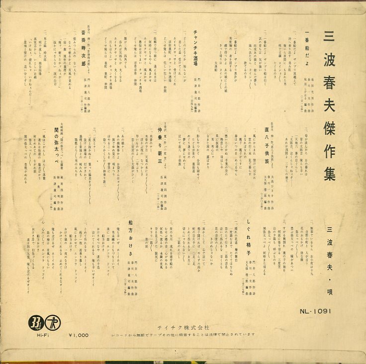 タイトル三波春夫傑作集(NL-1091・テイチク)