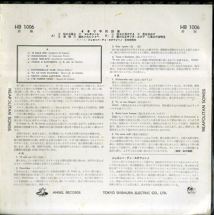 A00413233/10インチ/ジュゼッペ・ディ・ステファーノ「イタリヤ民謡集」 [浏览原始页面]