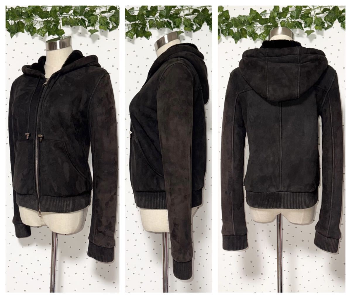 上質なラムスキンを使用した、ロエベならではのクラフツマンシップが光る高級ブルゾン。 しっとりとしたスウェード調の質感が美しく、装いを一段と洗練された印象へ引き立てます。 内側とフードにはふわふわのフルファーを全面に施し、見た目以上の暖かさと贅沢なボリューム感をプラス。(※取り外し不可) コンパクトなシルエットにリブ使いを効かせ、すっきりと女性らしいラインを演出します。 ダブルジップ仕様で着こなしの幅も広がり、デイリーから冬のお出かけまで活躍。 シンプルながら存在感のある、ワードローブに一着は揃えたい上質ブルゾンです。 本物 ロエベ フード付 裏地フルファー ラムスキン ブルゾン レザー ジャケット 34 ダークブラウン ダブルジップ リブ使い LOEWE 【サイズ】34(トルソーのサイズは9号です) ・肩幅:約41cm ・身幅:約46cm ・着丈(背面中央フード下から):約53cm ・袖丈:約65cm (素人採寸のため、多少の誤差はご了承ください) 【色】 ダークブラウン 【素材】 ・本体:ラムスキン ・裏地:フルファー(取り外し不可) 【状態】 擦れ・薄汚れが見られますが、まだまだ快適にご愛用いただけるコンディションです。 | |||