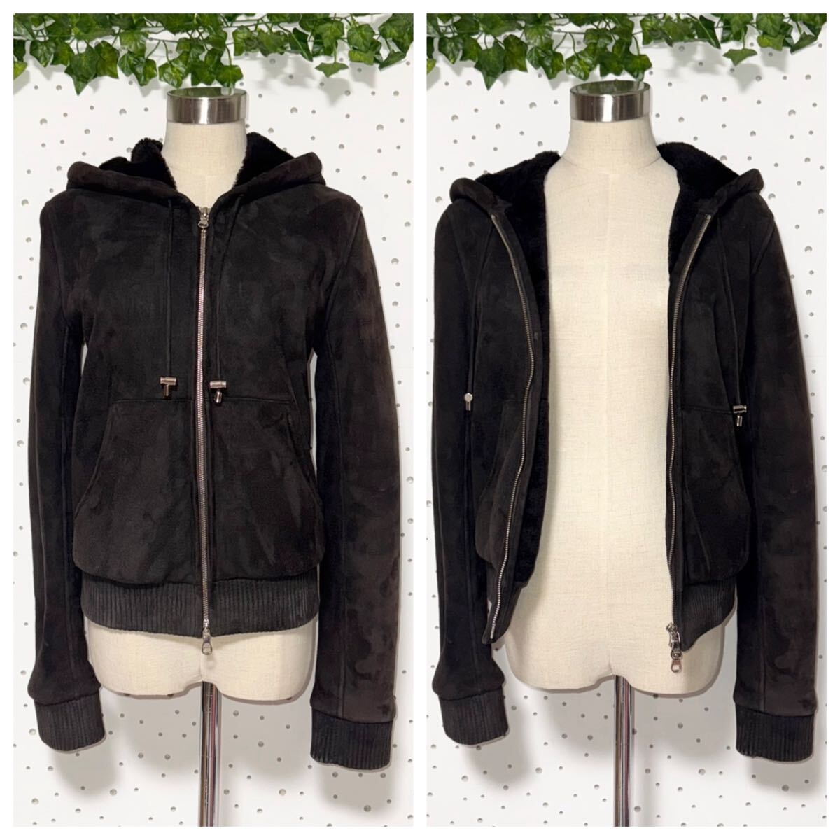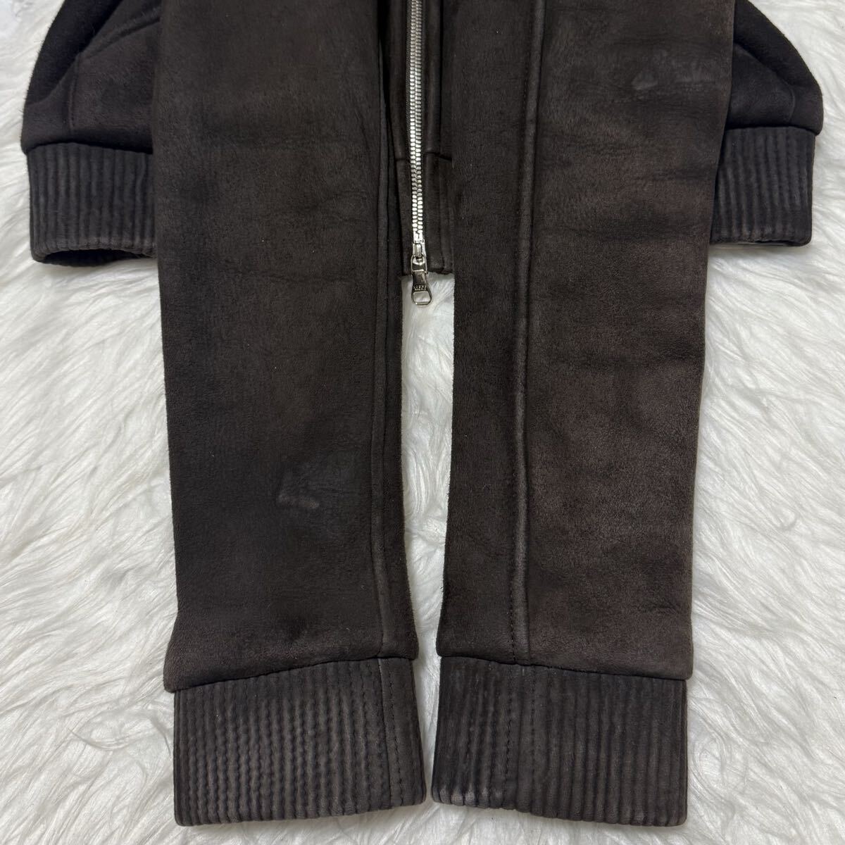 | 本物 ロエベ フード付 裏地フルファー ラムスキン ブルゾン レザー ジャケット 34 ダークブラウン ダブルジップ リブ使い LOEWE | |||