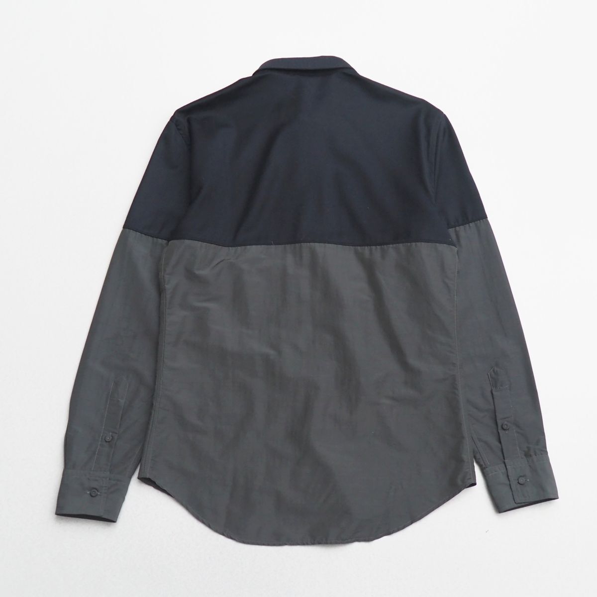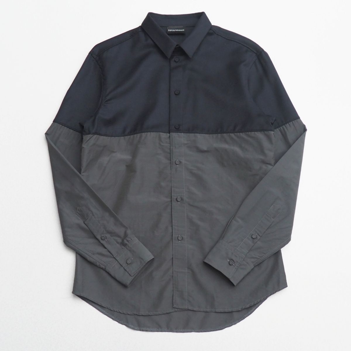 | TJ6853//*エンポリオアルマーニ/EMPORIO ARMANI*メンズ39/15.5/ウール×ナイロン/異素材切替/長袖シャツ/ネイビー×グレー | |||