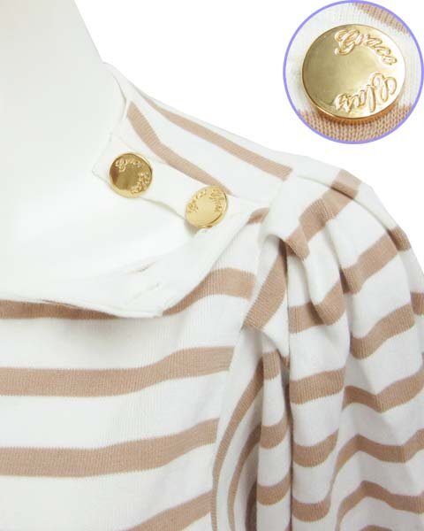 | グレースクラス 白 茶 ボーダー 7分袖 ニット 36 |