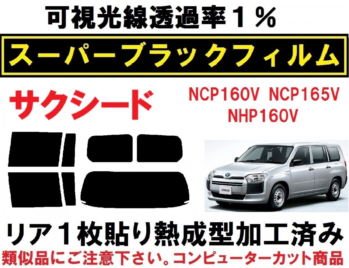 | サクシード 160系用スーパーブラック『可視光線透過率1%』1枚貼り成型加工済みフィルム リア5面セットです。(専用施工液付き) 平成26年9月~ NCP160V NCP165V NHP160V NSP160V に適合します。 注:平成26年8月以前の50系サクシードには適合しません。 ※適合等 ご不明な点など有りましたら、お気軽にご質問下さい。 ◇◆◇施工に便利なプロ仕様のヘラセット付き商品も出品中です◇◆◇ こちら ◇◆◇精密コンピューターカット◇◆◇ 貼りやすさを最優先に各部のサイズ・形状など微調整し、改良を重ねた独自のデータを製作。 高精度な最新・大型カッティングプロッターによるカットで正確で滑らかなカットラインを再現しています。 施工業者だからわかる、貼りやすいサイズ・形状に仕上げています。 ◇◆◇リア1枚貼り成型加工済み◇◆◇ リアガラスの湾曲に合わせて熱成型加工して有りますので、平面に貼るのと同様にたるみが出ず1枚貼り出来ます。 ※最適な状態に成型加工して有りますので、ヒートガン(ドライヤー)等は不要です。 リアの他、ドア2面もたるみが出やすいので成型加工しています。 ◇◆◇専用施工液付属◇◆◇ 軽視されがちな施工液ですが、貼りやすさに大きく関わる部分になります。中性洗剤などで代用せず、必ず付属の専用施工液をご使用下さい。 濃度については車種・季節などにより変わりますので、個別にお知らせ致します。 ◇◆◇業務用高品質フィルム使用◇◆◇ 使用しているフィルムは、安心の国内メーカー 業務用高品質フィルム「ニュープロテクション」シリーズです。(可視光線透過率1%) 業務用フィルムの中で最も濃いタイプで、紫外線99%カット 遮熱性も高めです。 同シリーズで可視光線透過率 5% 10% 15% 25% の物もご用意出来ます。 ご希望の場合は、ご落札後濃さの指定をして下さい。(部分的な色変えも可能です) ご指定の無い場合、全て1%になります。 部分的にフィルムが必要になった場合、単品販売も承ります。 他にもサクシード用フィルム、各種出品中です。こちらもご覧ください。 ご不明な点など有りましたら、お気軽にご質問下さい。 | ||