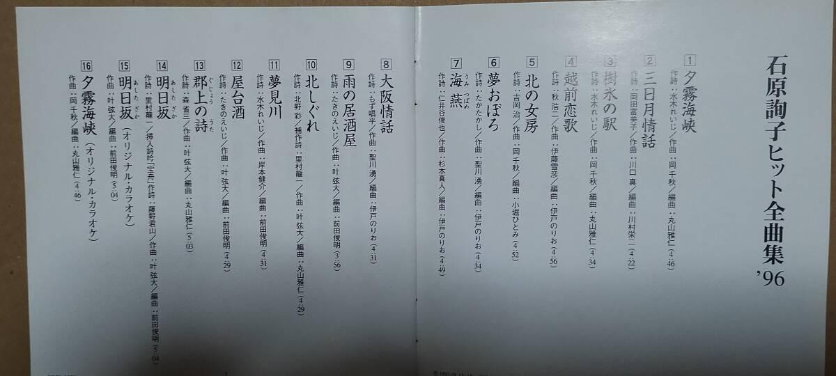 石原詢子さんのヒット曲を収録した、「石原詢子ヒット全曲集」のCDアルバム盤になります。| 出价者 | 信用 | 价格 | 时间 |