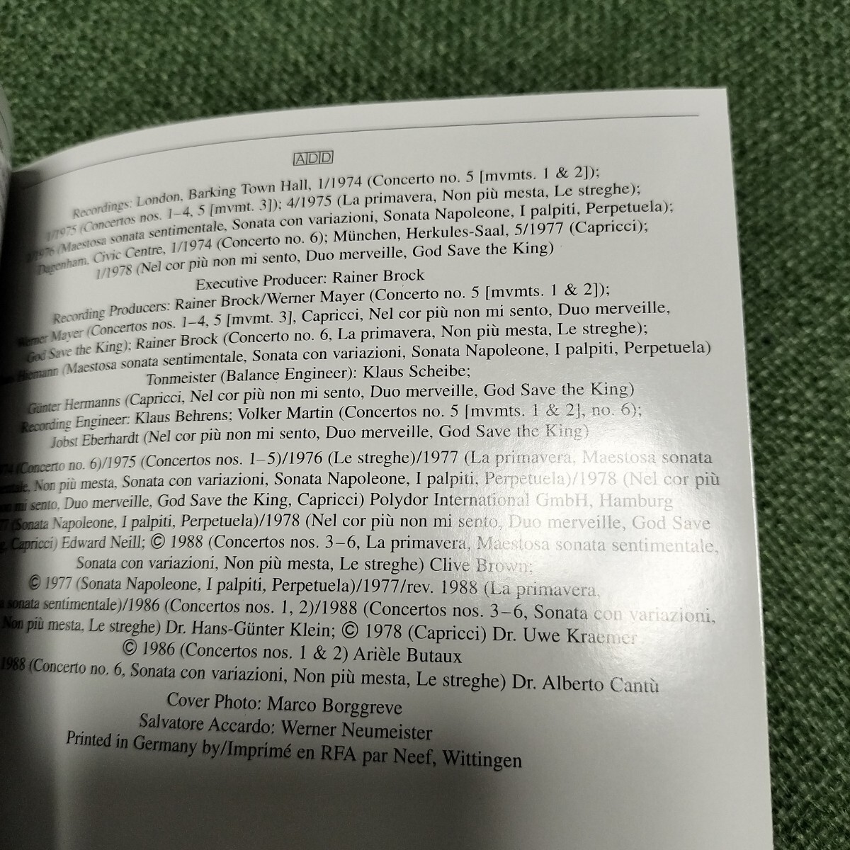 出品者コメント:なんと、この名演集が廃盤!?DGGの凋落がわかる。ブルーレイオーディオの変なセットがあったようだが、名録音にハイレゾは必要ないのはよくあること。このあとEMIでもコンチェルトだけ指揮振りで出しており、そちらも出品。しかし当然、オケの鳴りっぷりはこちらが良い。また、伝説のカプリースもこちらにしかない。マニアは6枚目のマイナー曲目も必携。 構成数 合計収録時間 【曲目】 パガニーニ: [CD1] ヴァイオリン協奏曲第1番 ヴァイオリン協奏曲第2番 [CD2] ヴァイオリン協奏曲第3番 ヴァイオリン協奏曲第4番 [CD3] ヴァイオリン協奏曲第5番 ヴァイオリンと管弦楽のためのソナタ『タ・プリマヴェッラ』Op.30 マエストーサ・ソナタ・センティメンターレ [CD4] ヴァイオリン協奏曲第6番 ウェイグルの主題による変奏曲付きソナタ ロッシーニの『シンデレラ』のアリアによる序奏と変奏 魔女たちの踊り [CD5] 24の奇想曲 [CD6] ナポレオン・ソナタ ロッシーニの『タンクレディ』のアリアによる序奏と変奏Op.13 無窮道 パイジェッロの『わが心はうつろになりて』による変奏曲 驚異の二重奏 『ゴッド・セイヴ・ザ・キング』による変奏曲 【演奏】 サルヴァドーレ・アッカルド(ヴァイオリン) シャルル・デュトワ(指揮) ロンドン・フィルハーモニー管弦楽団 | |||