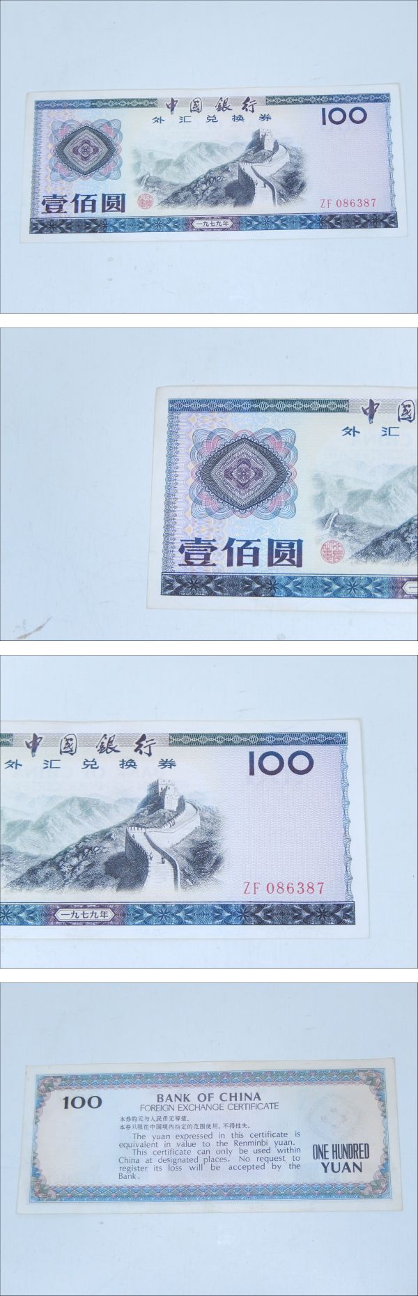 | 【管KA1102】10000円~ 希少 未使用 中国古銭 紙幣 中国銀行 外貨兌換券 1979年 壹佰圓 折れ無し 100元 100圓 | ||