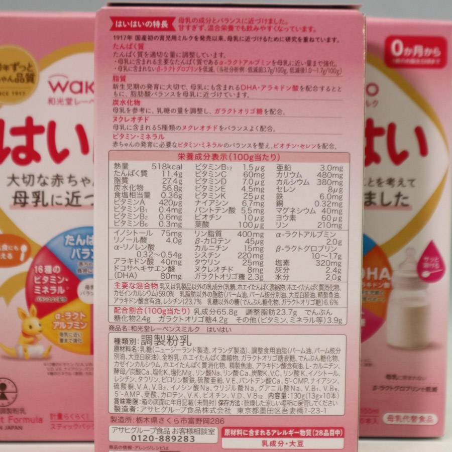 全粉乳、ホエイたんぱく濃縮物、ガラクトオリゴ糖液糖、でんぶん糖化物、 カゼインカルシウム、ホエイたんぱく質消化物、