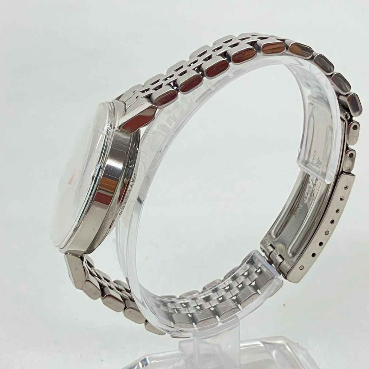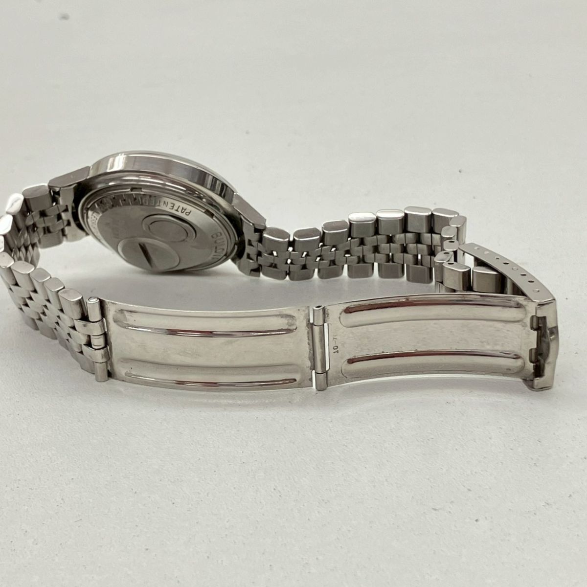 取り扱っている商品は未使用・未開封も含め、全て一度は人の手に渡った一点ものの中古・ジャンク扱いでの商品です。 当方素人ですので肉眼で確認できる簡易的な検品、採寸、および簡易梱包となります。 ※稼働の記載につきましては秒針等の確認のみとなり、全体の動作を保証するものではございません。 また、出品時の中古品の動作状況となりますので、予めご了承の上でご入札ください。 不動の表記につきましてはクォーツ式のムーブメントの場合、動作未確認の状態となります。 電池交換後、不具合があった場合でも返金、返品の対象とはなりませんので、予めご了承くださいますようお願い致します。 細かな日差、オーバーホール状況、社外パーツの使用に関しては保証しかねますので、ご理解いただけた上でのご入札をお願い致します。 上記を踏まえた上で中古品、ジャンク商品として出品させていただいておりますので、全てご理解いただけた上でのご入札をお願いいたします ------------------------------------------------------------------------- 【メーカー】 BULOVA 【モデル名】 ACCUTRON 【型番】 N2 【シリアル】 3-301100 【サイズ】 直径約3.5cm 腕回り約16.5cm 【付属品】 画像参照 【稼働状態】 稼働 【その他状態】 リューズ動作 時間:OK 日付:- 曜日:- ------------------------------------------------------------------------- 画像にあるものが全てです。 他詳細は画像にてご判断ください。 ※目立つ傷や汚れを中心に写真を撮っておりますが、画像に写りきっていない傷等がある場合もございます。予めご了承ください。 ※商品を多数出品している関係で、稀に商品説明や画像に誤りがある場合がございます。予めご了承ください。 こちらのページをご覧いただく際は、商品説明文と掲載している画像の全てを確認いただいた上でご入札ください。 | |||||||