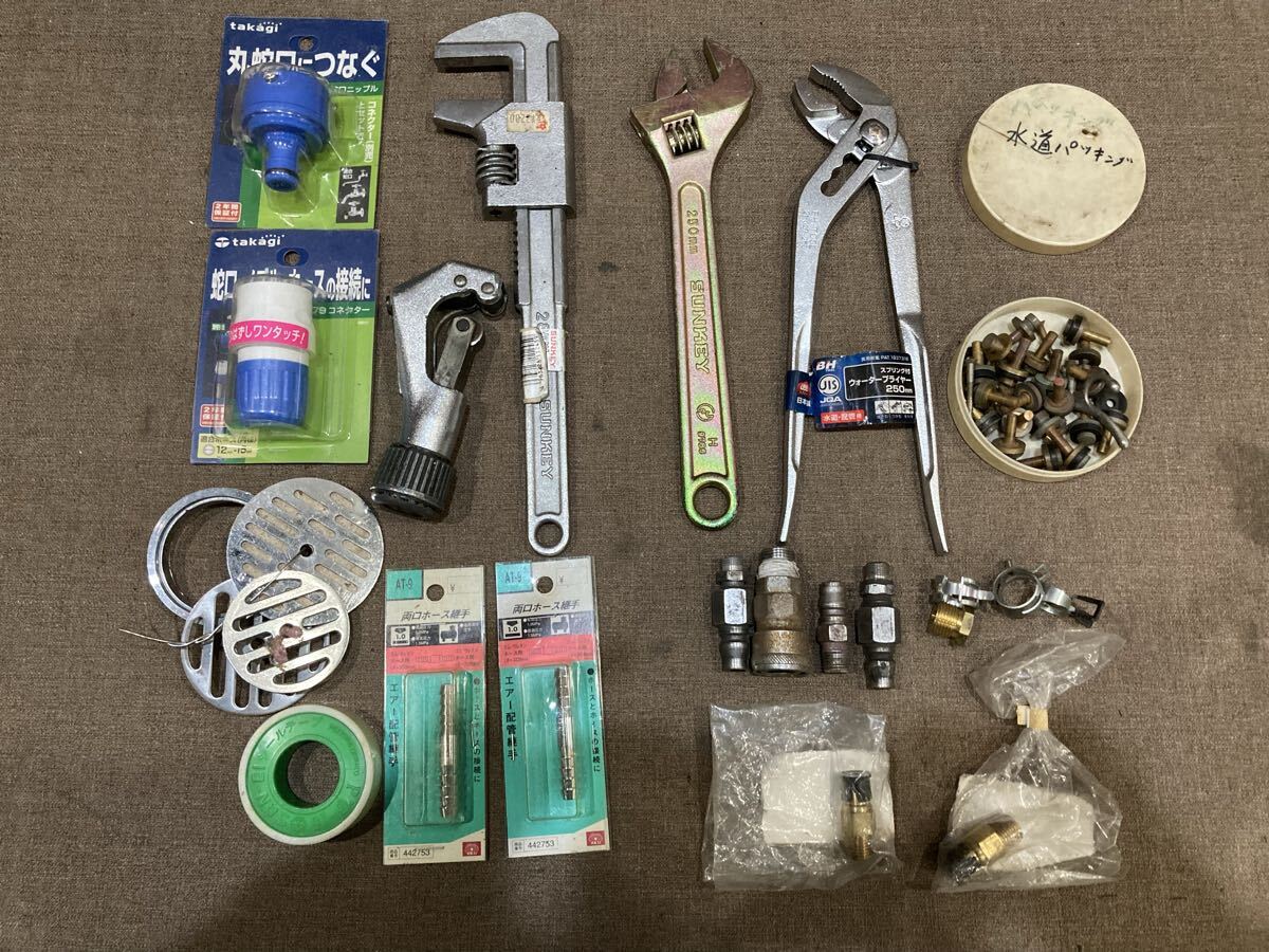 40【水道工事用具まとめ】蛇口ニップル 両口ホース継手 ウォータープライヤー モーターレンチ カプラー ケレップ 等 あ| 出价者 | 信用 | 价格 | 时间 |