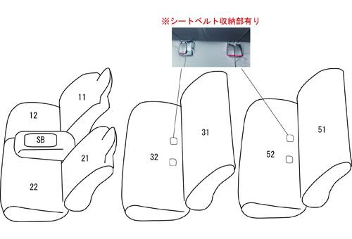 | 適合形状 | 1列目:座面形状が4:6分割、ヘッドレスト一体型、センターシート有り 2列目:背もたれ座面一体型、ヘッドレスト無し、シートベルト有り 3列目:背もたれ座面一体型、ヘッドレスト無し、シートベルト有り ※9人乗り仕様に適合 |