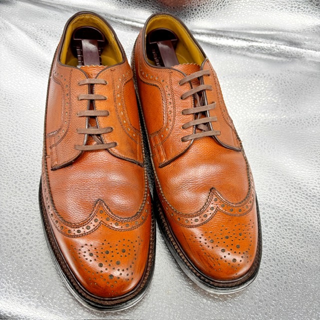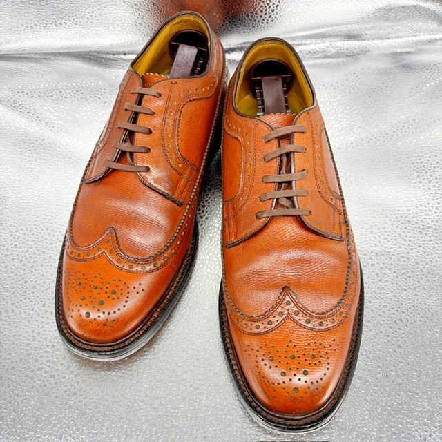 ご覧いただき、ありがとうございます。 オシャレで高級感のあるリーガル チャンピオングレードのビジネスシューズです。 デザイン性:機能性共に定評のある商品です。画像のシューキーパ付きです。 1足押さえてあるとファッションの幅も広がり大活躍するお勧めの商品です。 中古品のため、スレや傷、ヨゴレ等ありますが、その分お値打ちにしております。 詳しい状態は画像でご確認ください。 商品のサイズについて 表記サイズ 25.5EE アウトソール全長 約29.0cm 全幅 約10.2cm (素人採寸) ●状態①「外観」 履きジワ、着用に伴う擦れ、傷がございますが、着用に支障はございません。 くわしくは画像で確認ください。 ●状態②「ソール・インナー」 インソール内ロゴ残っています。 ●その他・付属等 画像のシューキーパ付きです。 | |||