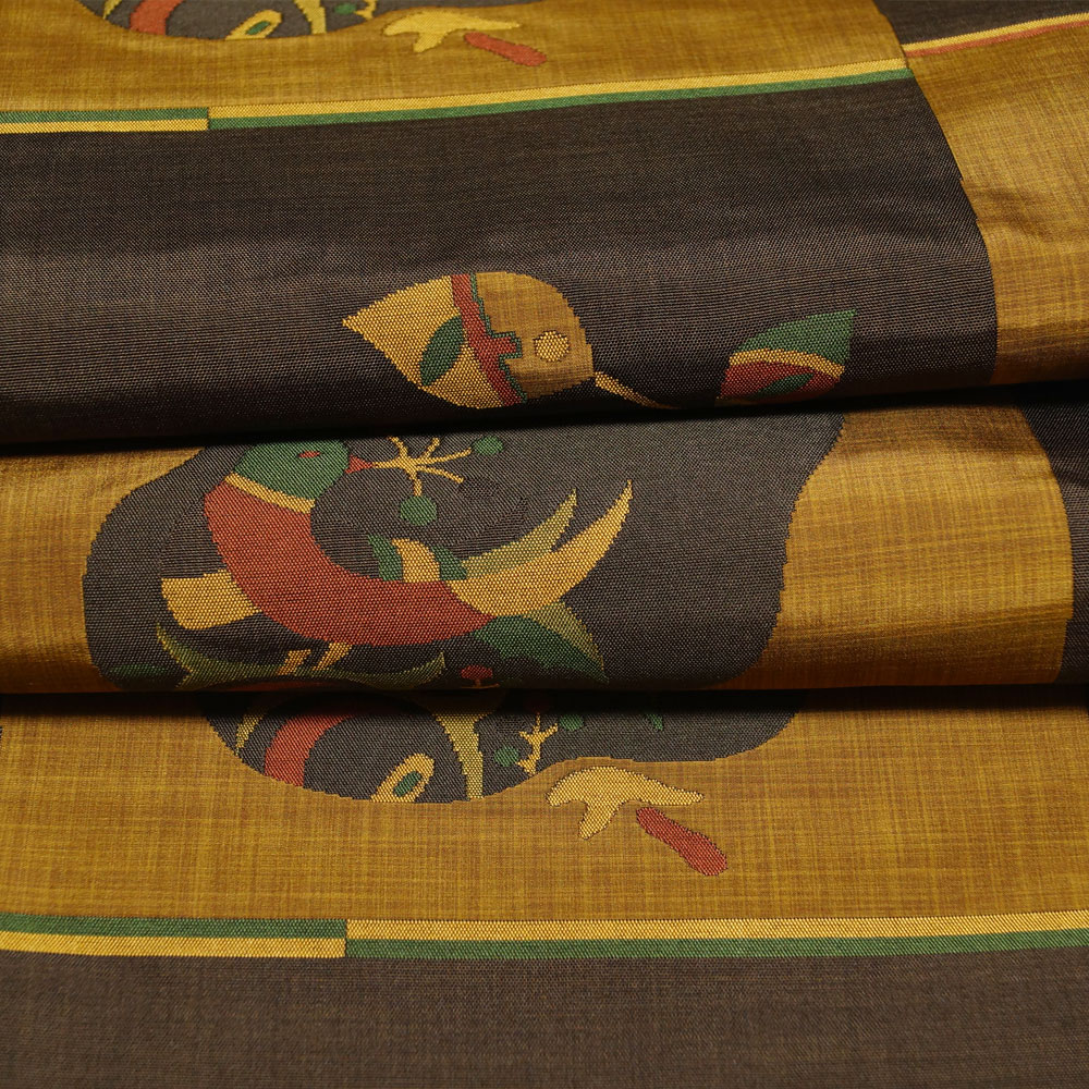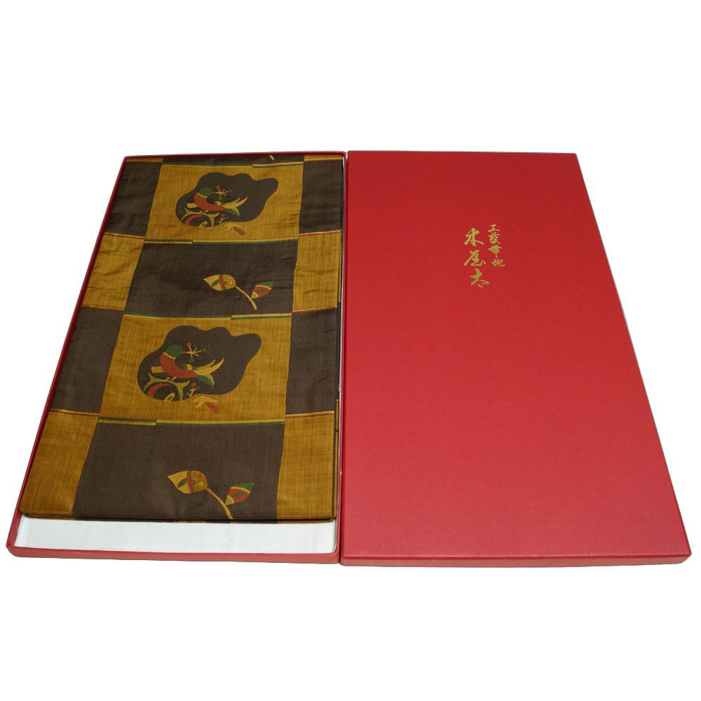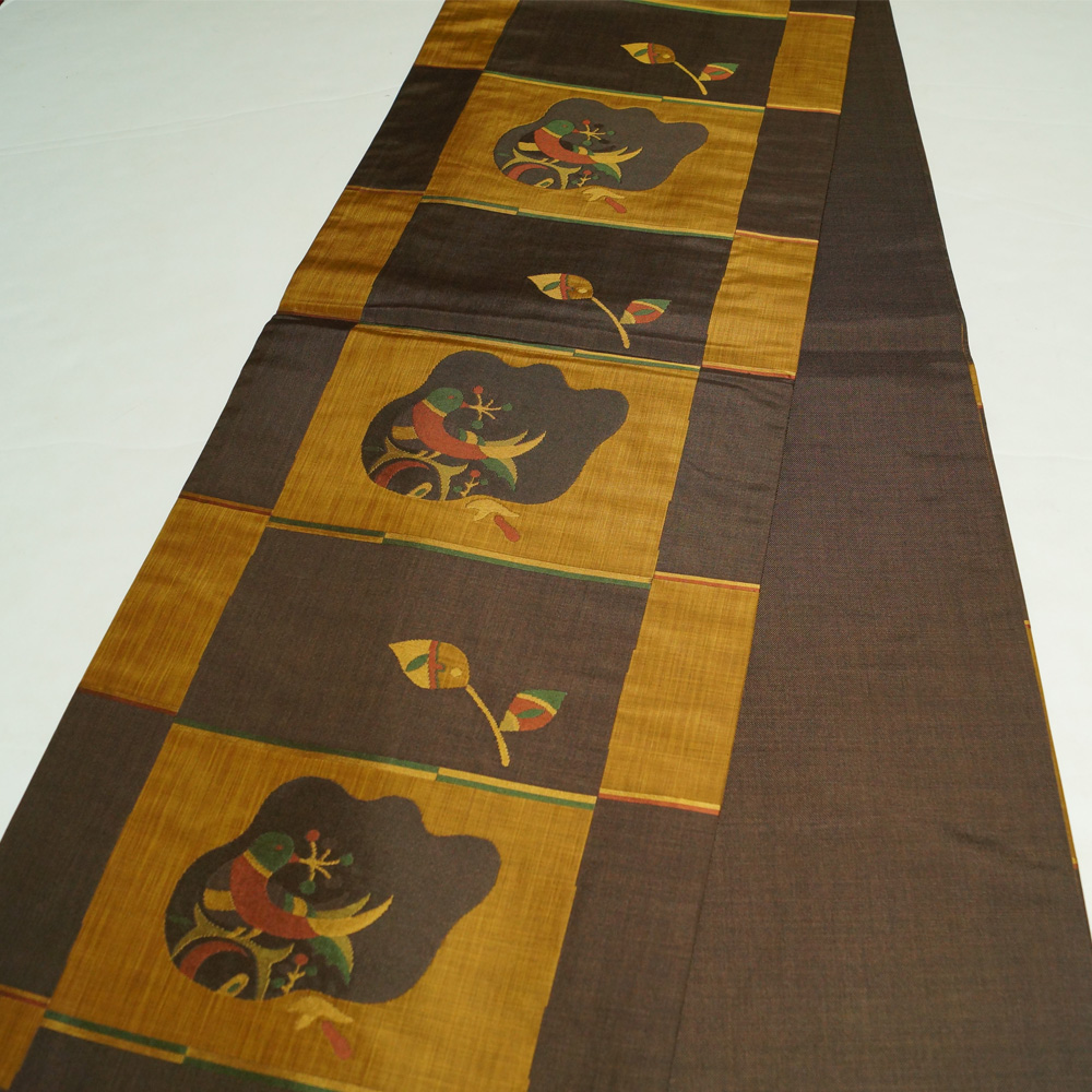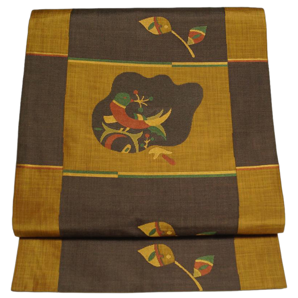 | 商品 説明 | しっとりとした焦げ茶・黄唐茶色系の格子取された正絹地に鳥や枝葉模様などが織られた木屋太謹製の洒落袋帯です。西陣 今河織物謹製「木屋太」ブランドのモダンな洒落袋帯です。垂れ先中に銘と帯箱も御座います。 |