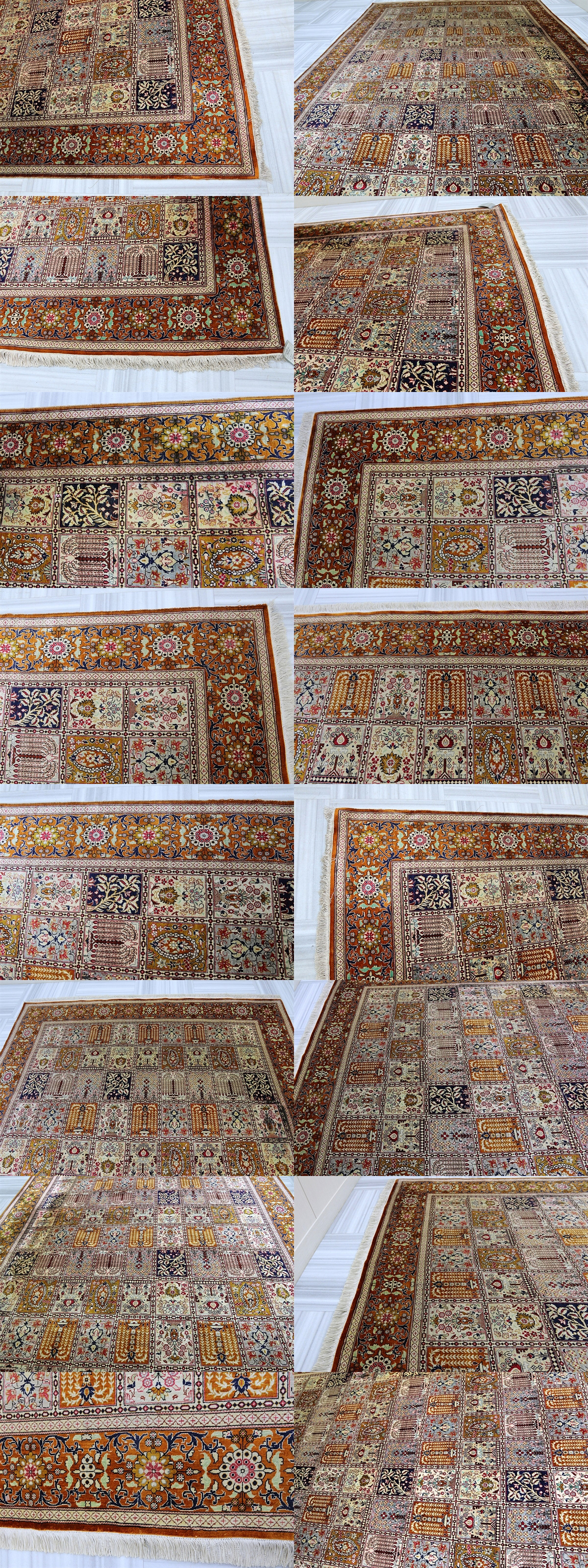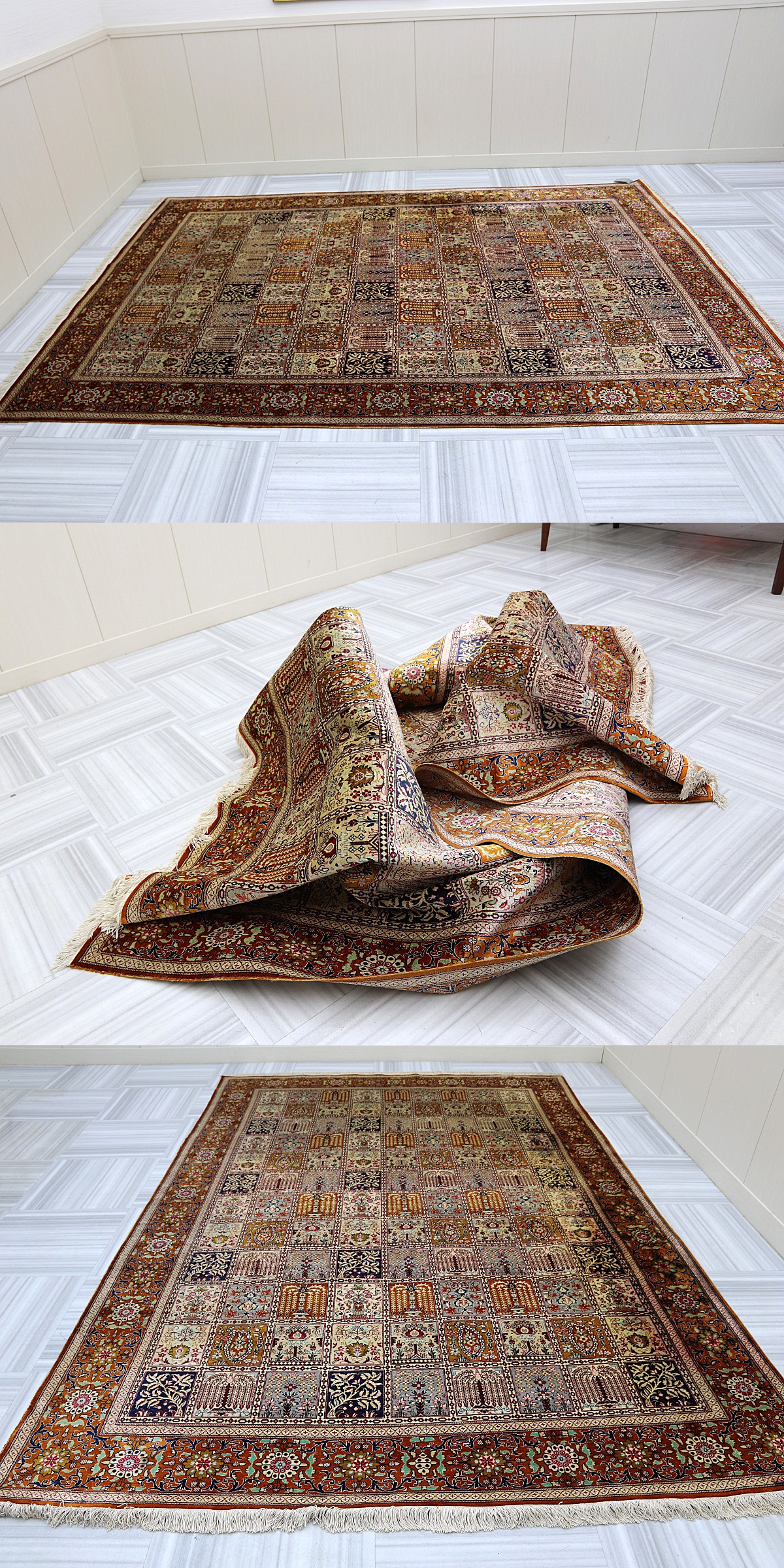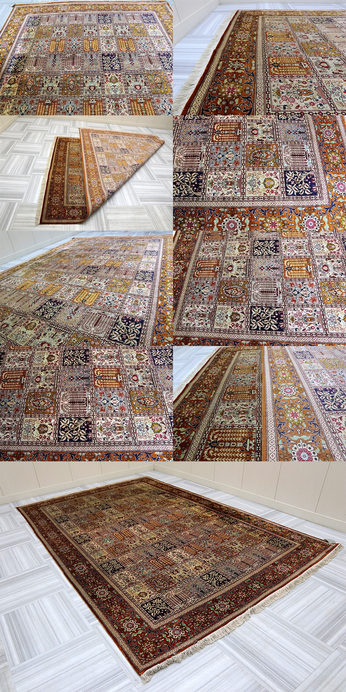 | ★ご覧いただき誠にありがとうございます★ ◆参考上代:10,000,000円 ◆サイズ:約-292×194cm ※実測(フリンジ含まず) 【ペルシャ絨毯 クム産】 テヘランから南へ約120kmに位置する街クムは、シルク絨毯の代表的産地です。伝統あるカシャーンの伝統工芸の一つでその価格は他の産地を圧倒しています。シルク100%で織り上げている為、手触りは柔らかくそのしなやかで繊細な品質は他を圧倒するほどの出来映えです。シルク絨毯は角度によって色合いは薄く見えたり、濃く見えたりしますのでウール絨毯とは全くの別物です。手触りも柔らかく最高の質感を与えてくれます。一つ一つを手織で編み上げる、時間と労力を無視した工法は、良いものを作る信念が無ければなせない業です。手織り絨毯は、その織り特性や素材の特性からみても非常に耐久性があります。年月と共にますますその風合いの良さが醸し出されることでしょう。 ◆イラン・クム産。KHESHTI工房-オールシルク絨毯の出品となります。緻密に織られたシルク100%手織りペルシャ絨毯の出品です。非常に細かく織られた美術品レベルのすばらしい作品です。 こちらは高級カーペット販売で有名な「ASWAN」で購入されたお品です。購入はバブル期との事で30-40年前程度でしょうか。購入価格は1,000万との事で現在では考えられませんが、バブル期のクム産の工房作品です。それぐらいの金額は普通でしょう。 年数が経過し、何とも言えないすばらしい色合いになっております。よく質問をうける臭いなどはありません。シミもよく見ましたが見当たりません。側面の一部にホツレ、表面の一部に若干の色落ちが確認できました。(写真参照)これは美術的に惜しいです。ですが使用される上では問題は全くありません。よくよく見ないと分からないレベルです。最高級のペルシャ絨毯は、花や草からなる天然素材の塗料を使用している為、少しの事でこのようになってしまいます。ペルシャ絨毯でも安物は色落ちしません。これも最高級絨毯の証です。 ゲストルーム使用との事で、全体的に見て、30-40年経過しているお品にしては、本当にすばらしいコンディションかと思います。写真、所々白く光って見えるのは絹が光で反射しているからです。見る角度によって色合いが違って見えるのは、シルク絨毯の特徴でもあります。本当に見ていてうっとりする様なすばらしい織りの絨毯です。このようなすばらしい作品が人間の手によって創出されている事に感動です。最高級ペルシャ絨毯をこの機会にご検討下さい! ●あとはすべて写真にてご審査願います。写真には写りきらない、よごれやダメージ、詳細部分の、記載ミスなどがもしあっても、その旨のクレームはご勘弁下さい。上記内容をご理解頂き、ノークレーム・ノーリターンでお願いいたしいます。 |
