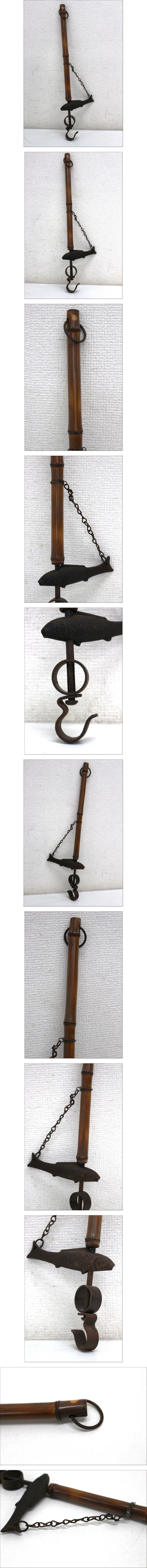 ZS818 自在鉤 竹製 魚飾/魚形横木 木製/木彫り 囲炉裏 古道具/古民具 和室/和風 吊り下げ アンティーク/レトロ ミニサイズ 現状品 | |||