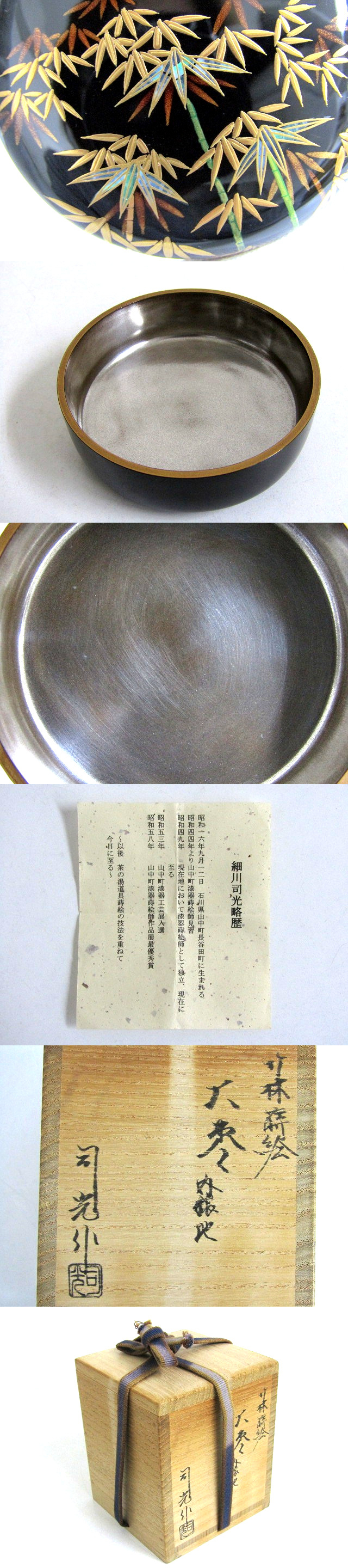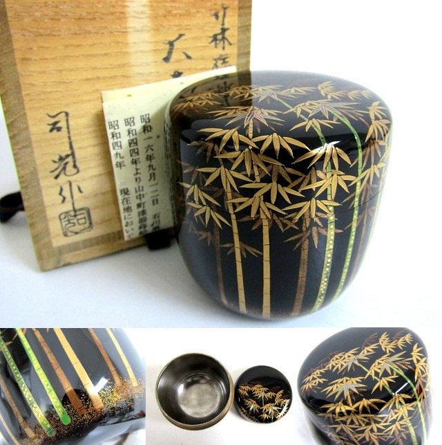 細川司光 作 竹林蒔絵 大棗 内銀地 螺鈿 共箱【説明欄に詳細写真有り】の出品です。