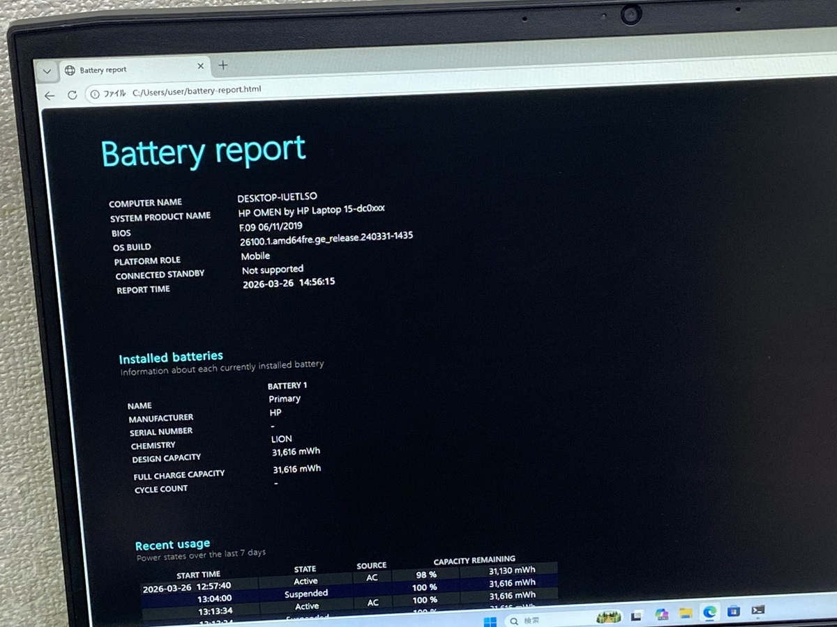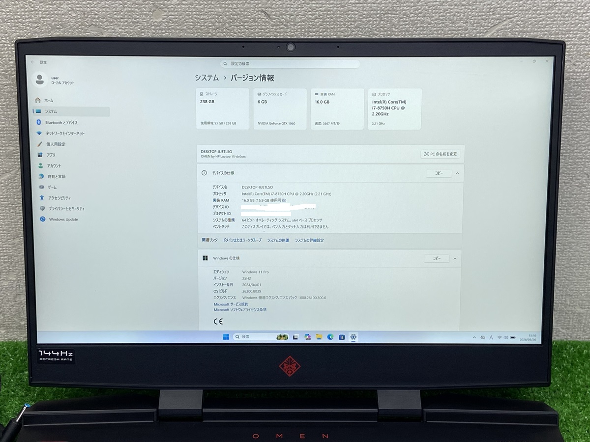 omen by hp laptop 15-dc0067tx i7第8世代 ノートPC Core i7-8750H ゲーミングノートパソコン中古 メモリ16GB NVMe256
