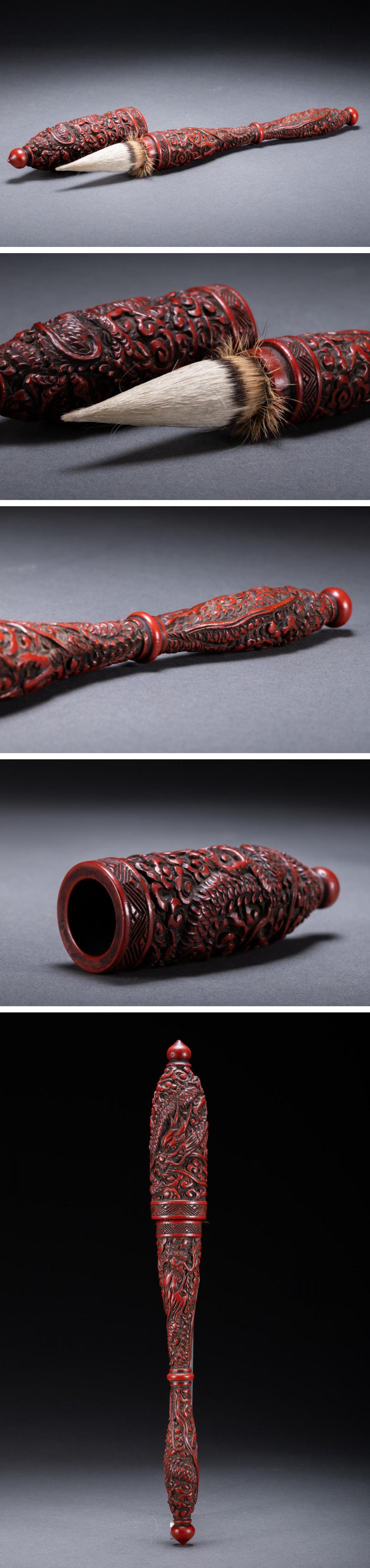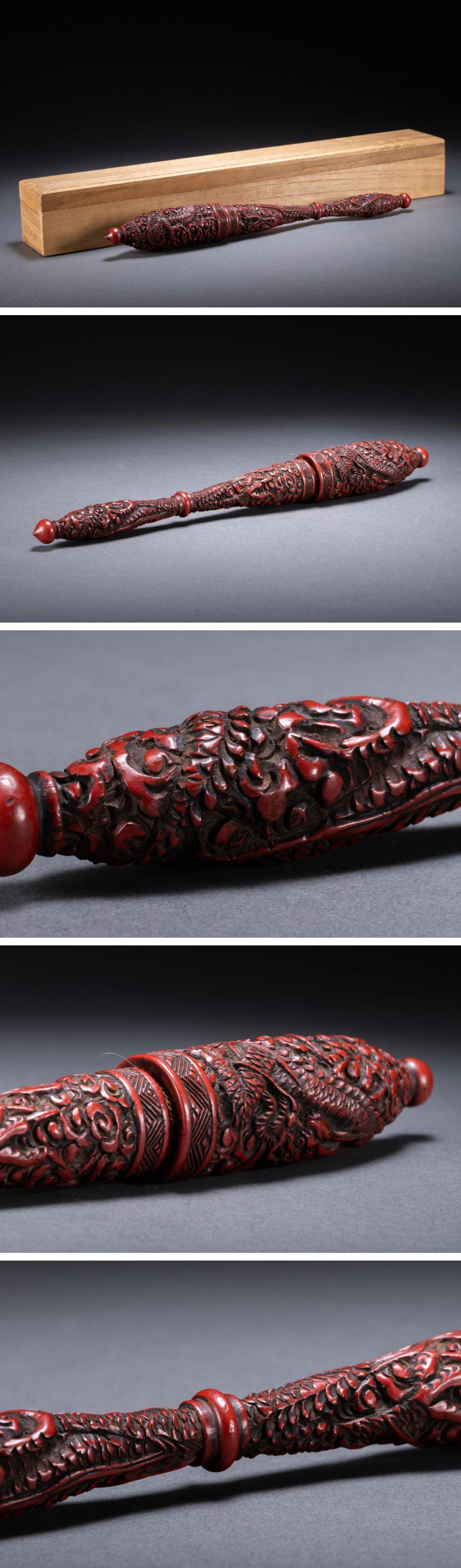 【雲錦】1円から 江戸時代 堆朱 雕漆 雲龍文古筆 共箱 時代物保証 材質保証 古美術 骨董品8L4-32S4  [浏览原始页面]
