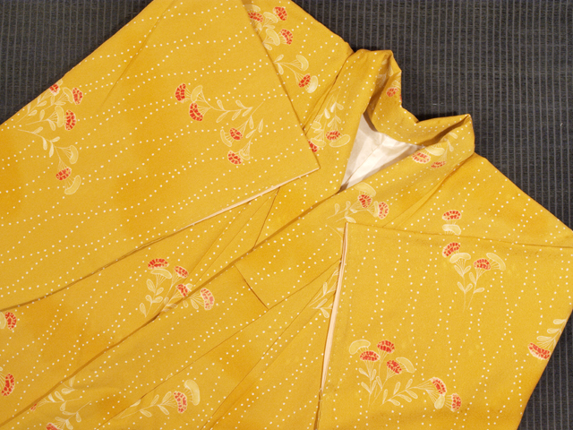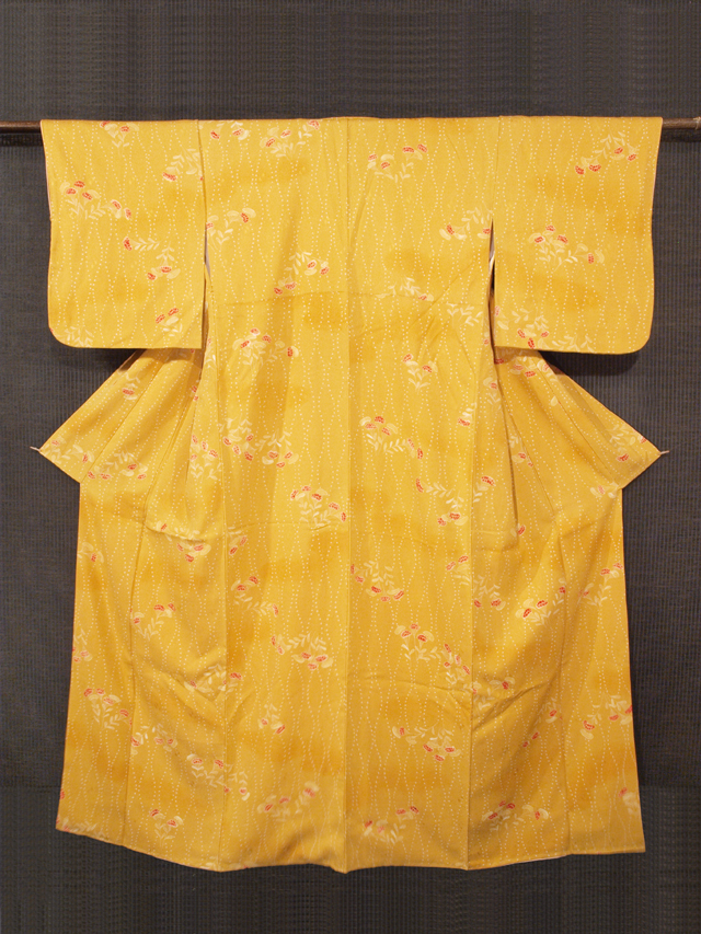 【しつけ付】女郎花立涌文 絞り 綸子 小紋 丈159 TAEF01014風楽 |