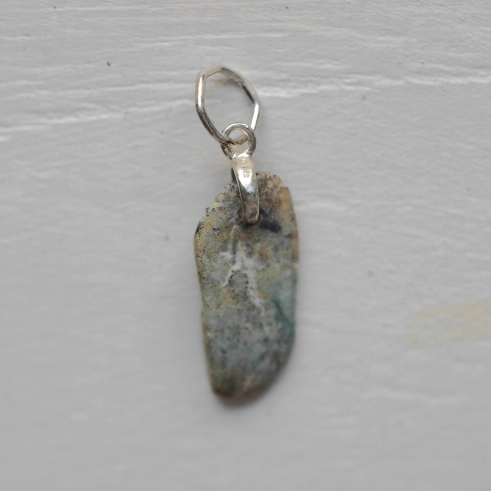 | (特徴など) | 日本でも糸魚川産の翡翠が有名で、古代から親しまれてきました。 糸魚川産翡翠の特徴は、研磨していない原石のままでも美しいのが特徴です。 こちらは原石雰囲気がある、個性的な表情を持つ翡翠のペンタンドです。 眺めているとその秘めたる魅力を感じます。 |