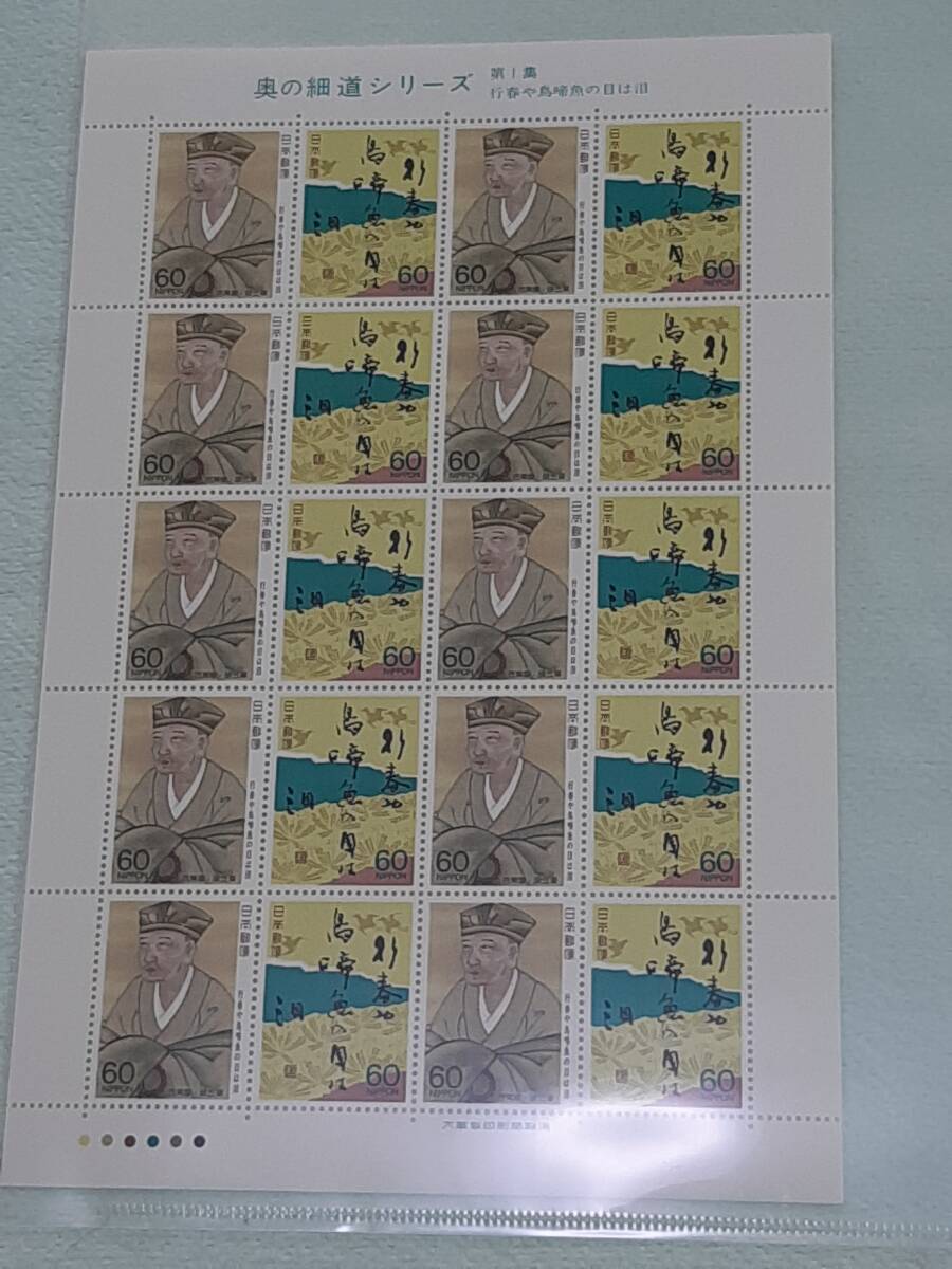 奥の細道シリーズ 第1集 行春や鳥啼魚の目は泪 1987 切手シート1枚