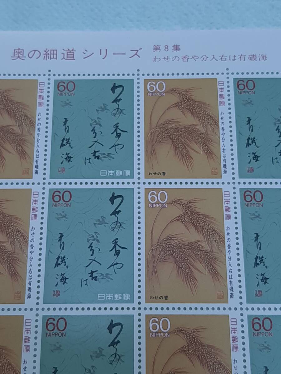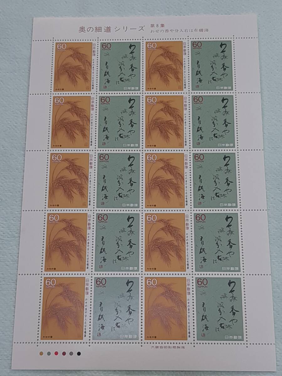 奥の細道シリーズ 第8集 わせの香や分入右は有磯海・あかあかと日は難面も秋の風 1988 切手シート各1枚と初日印切手付き解説書