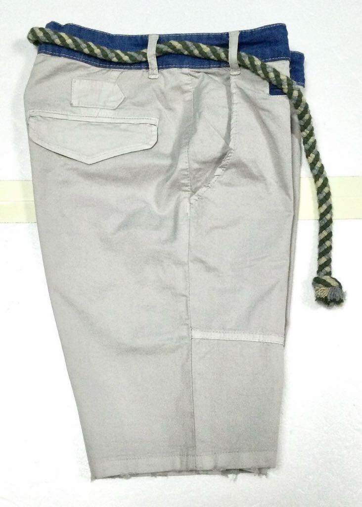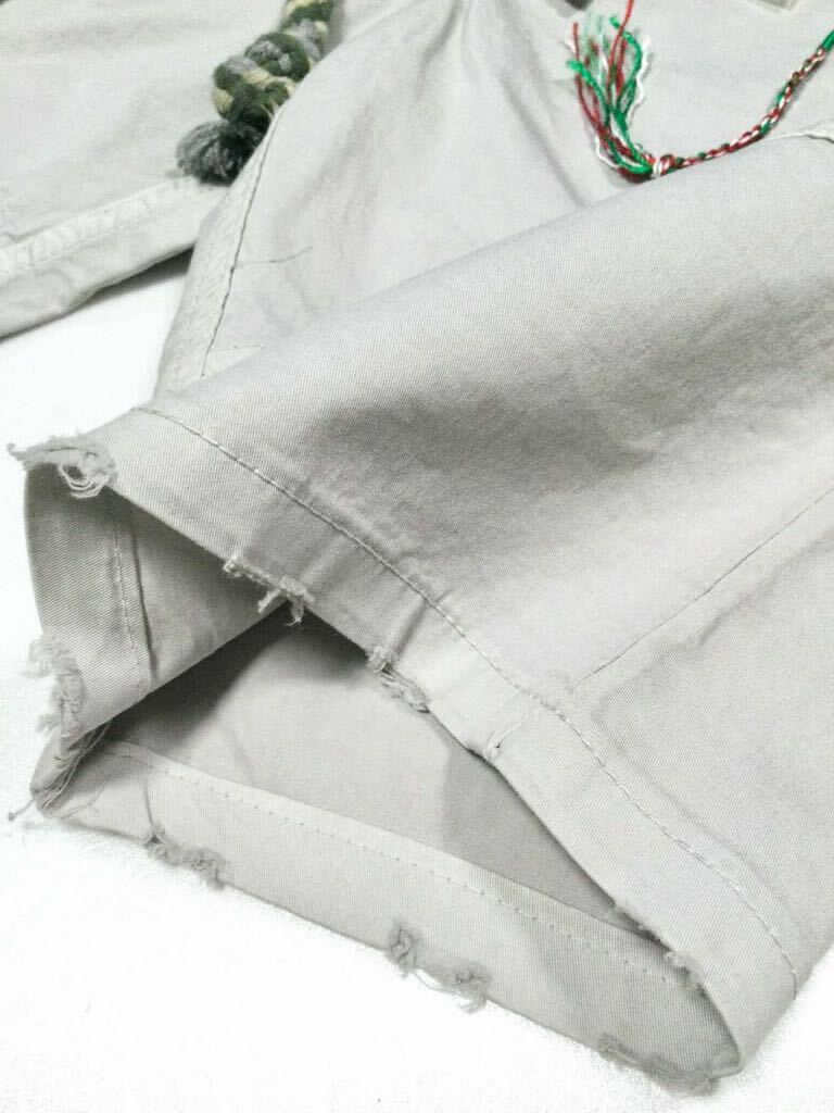 今回出品致しましたのは、“1148”、ウェスト部分始め、一部がデニム生地で切り替えられ、ヴィンテージ加工とダメージ加工が施された、リゾート×アーミーテイストのショートパンツになります。