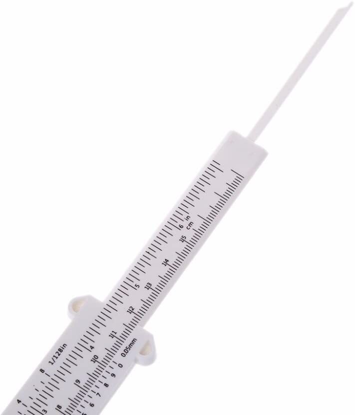 金属製のノギスよりも精度は劣るものの、安価で手軽にご利用いただけるプラスチック製のノギスです。