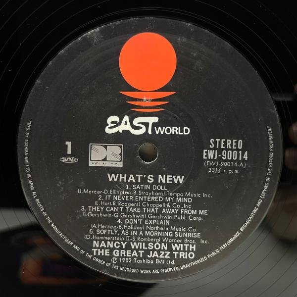 | artist NANCY WILSON / GREAT JAZZ TRIO title What's New label Eastworld / EWJ-90014 year 1982 format LP |