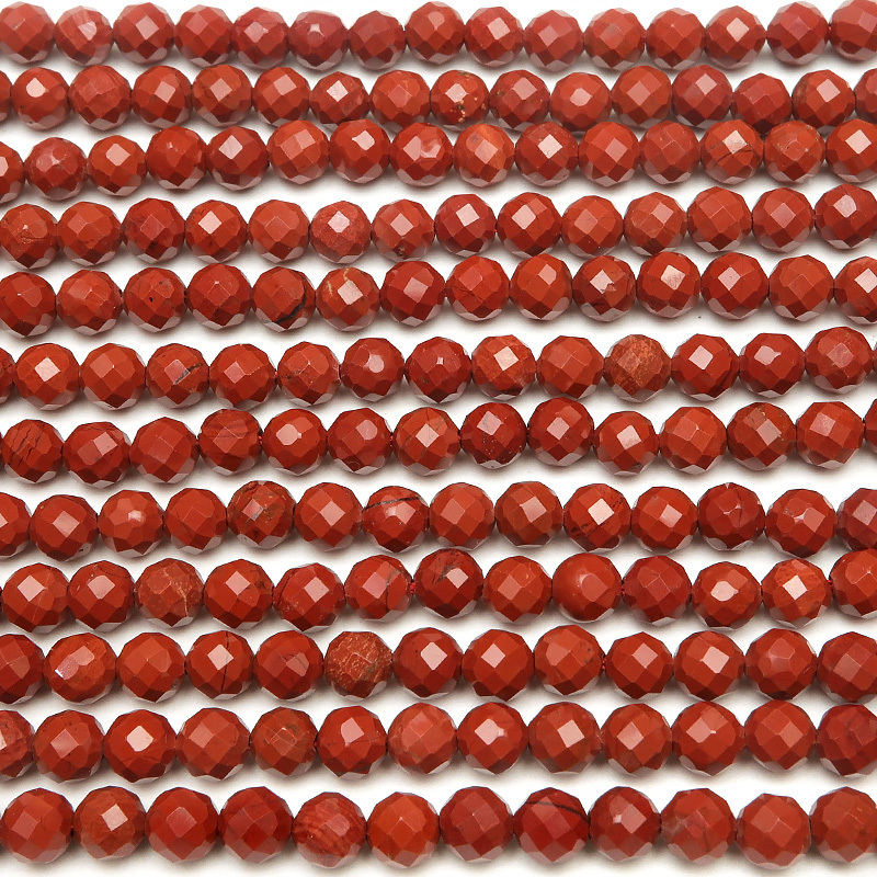 味わい深い赤褐色が印象的なレッドジャスパー32面カット丸玉[プレミアムカット]です。
