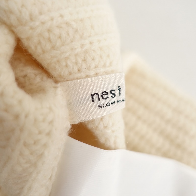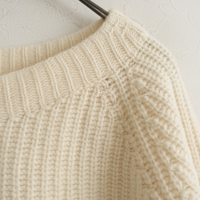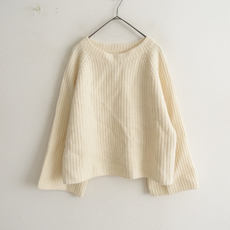 | nest Robeのアゼニットボートネックプルオーバーです。カラーはアイボリーです。ウールナイロンのふっくらとしたアゼ編みニットのプルオーバーです。ボートネックにラグランスリーブで、身幅、袖幅、袖口の幅広いセーターです。袖ぐりの目立てがポイントです。ポケットはございません。定価(メーカー希望小売価格)19,800円の商品です。 |