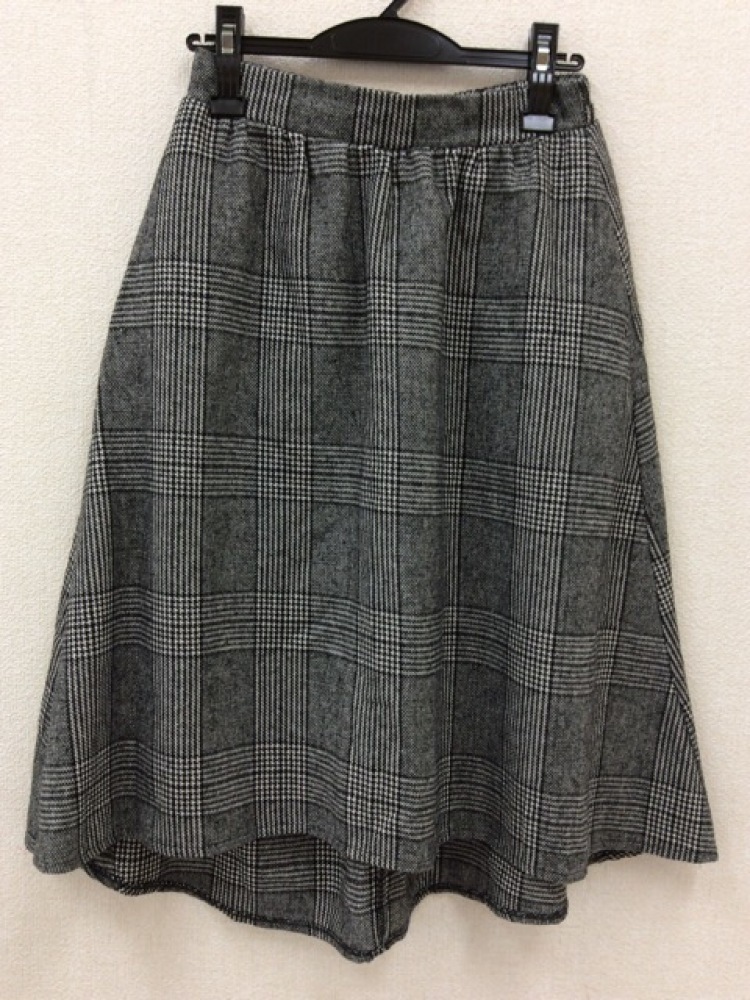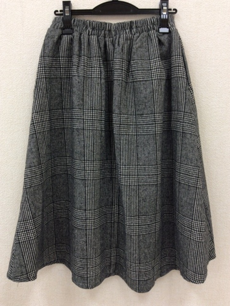 | 管理番号:10^124689 黒白チェック フレアスカート ウエストゴム 表示サイズ:M 実寸(参考)