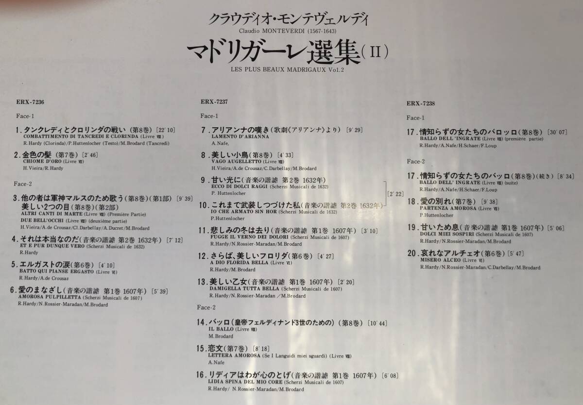 3LP-Jan / RVC_ERATO / ミシェル コルボ・ローザンヌ声楽アンサンブル / クラウディオ・モンテヴェルディ_マドリガーレ選集 (Ⅱ)